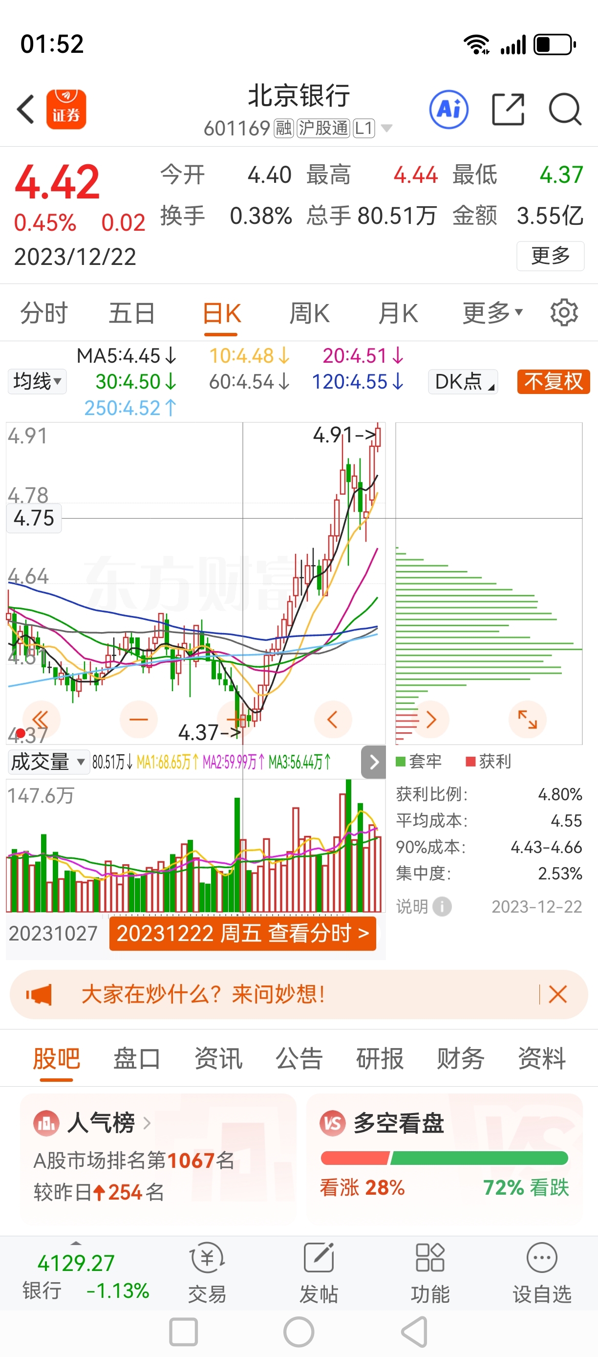 $北京银行(SH601169)$ 第一次买北京银行,那时净资产最低打压到3.8折