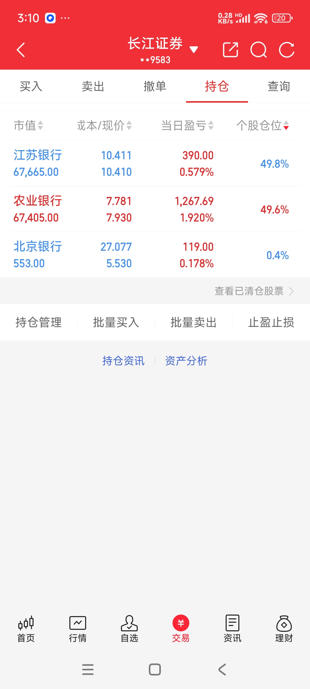 $北京银行(SH601169)$ 还好早上割了,买了点农业银行