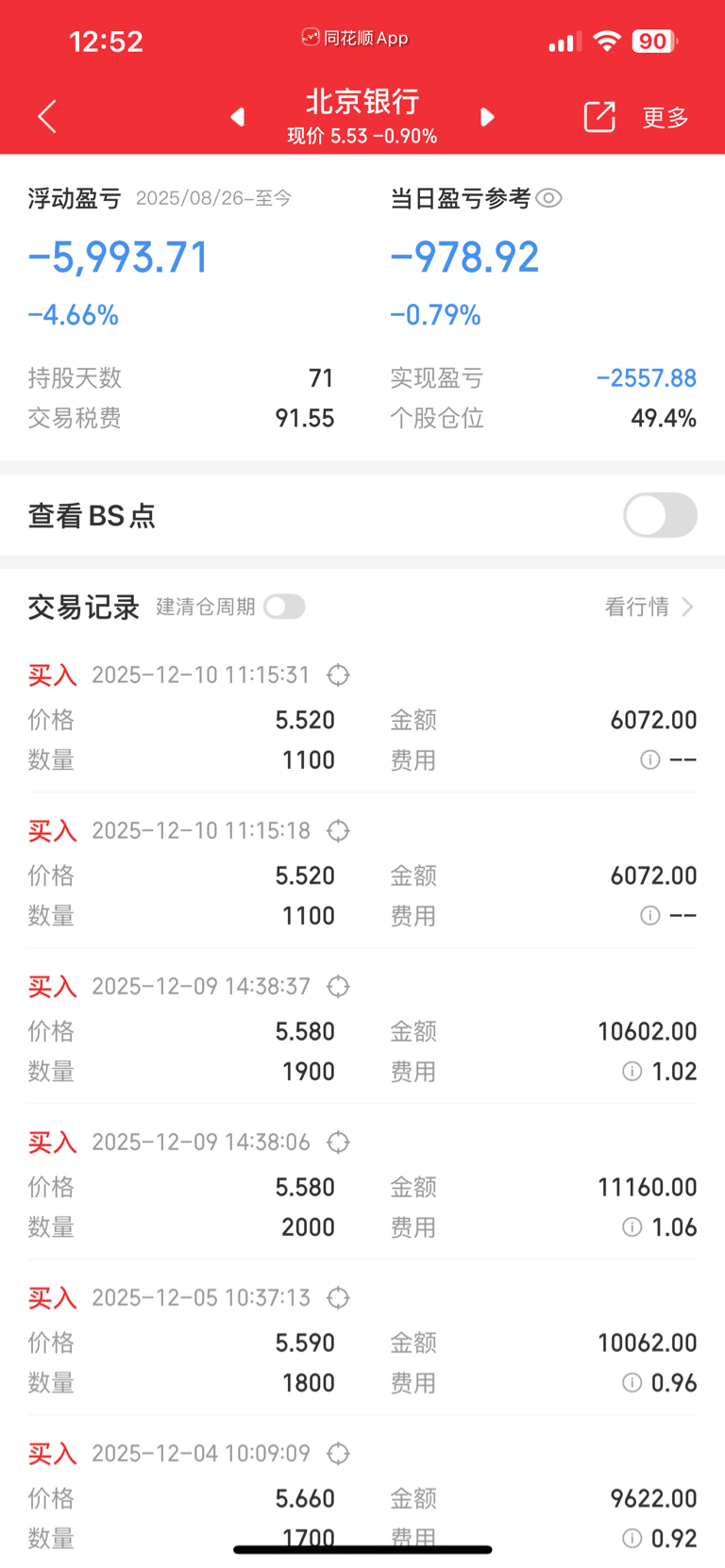 $北京银行(SH601169)$ 不解释,继续加仓!你们都去买科技股赚大钱,让我在银行亏吧!