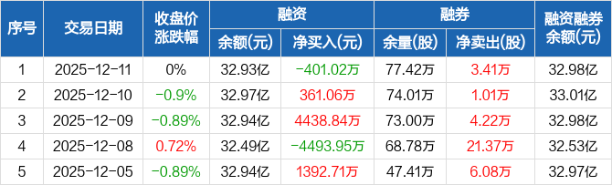 北京银行:融资净偿还401.02万元,融资余额32.93亿元(12-11)