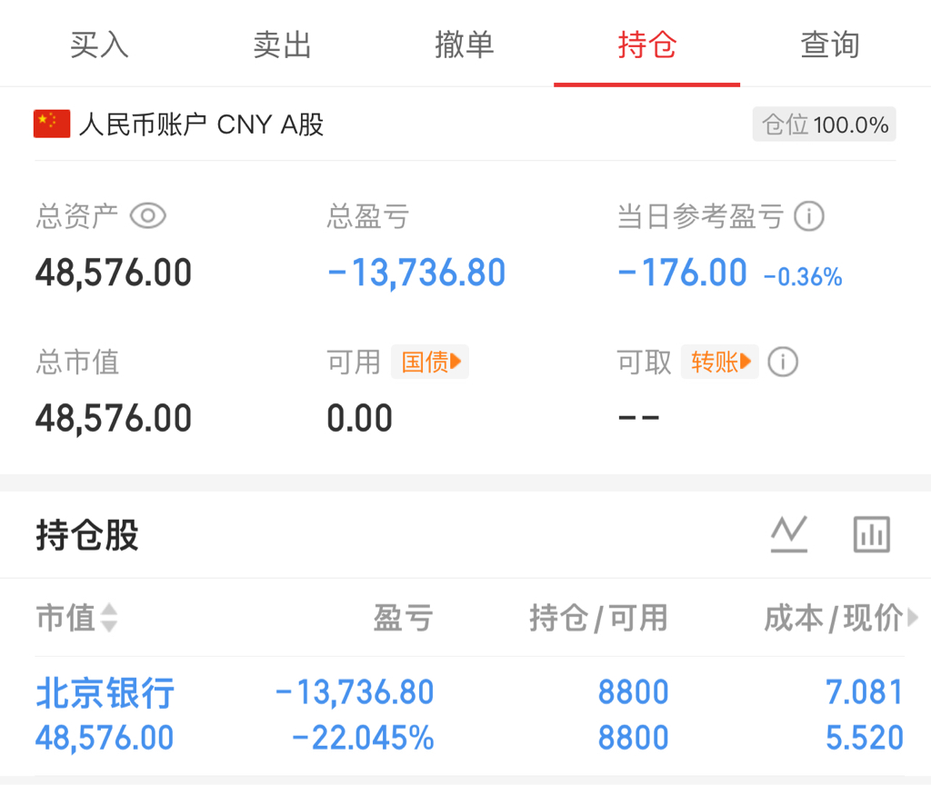 $北京银行(SH601169)$ 要跌到多少啊。。。