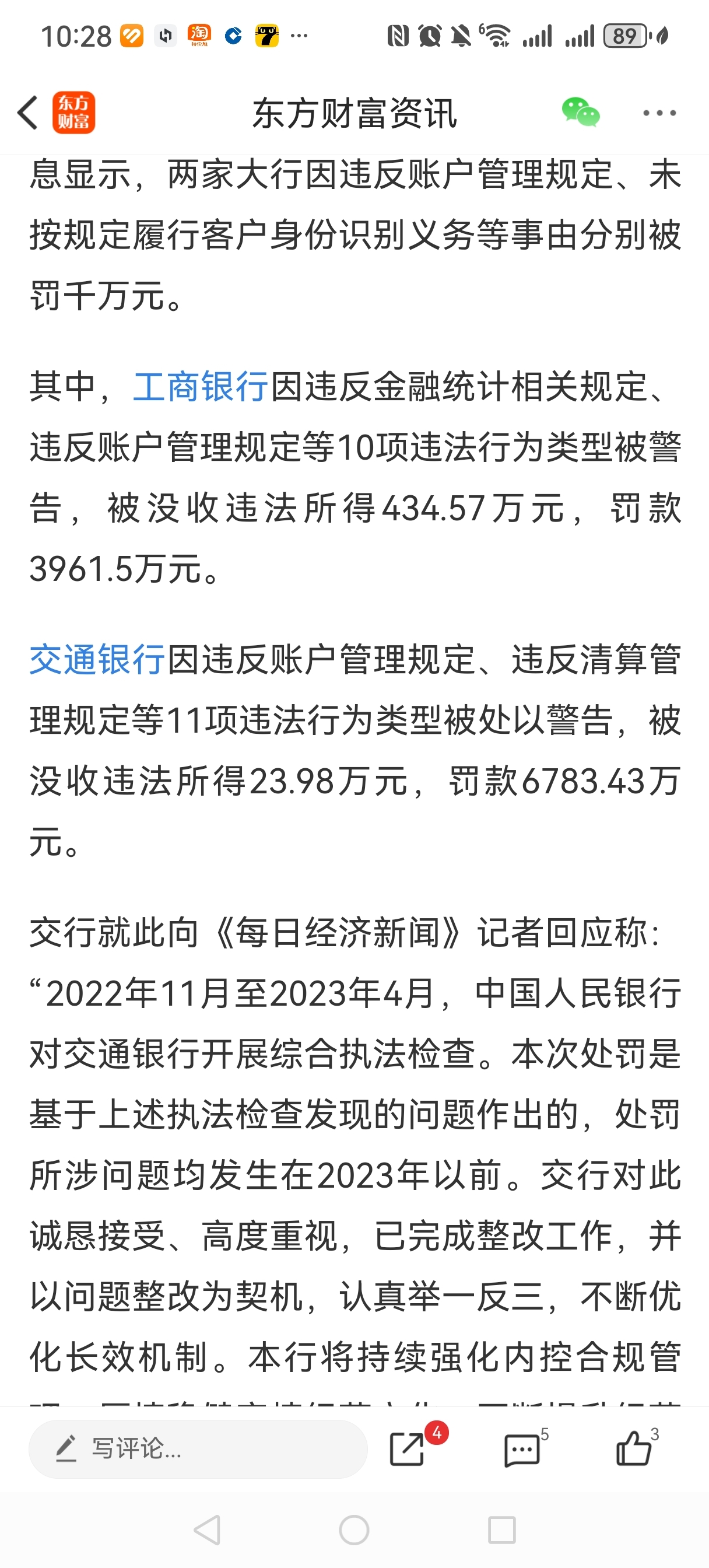 $北京银行(SH601169)$ 工行和交行也被罚了,哪个银行不违法规定估计是央行该发年终奖了