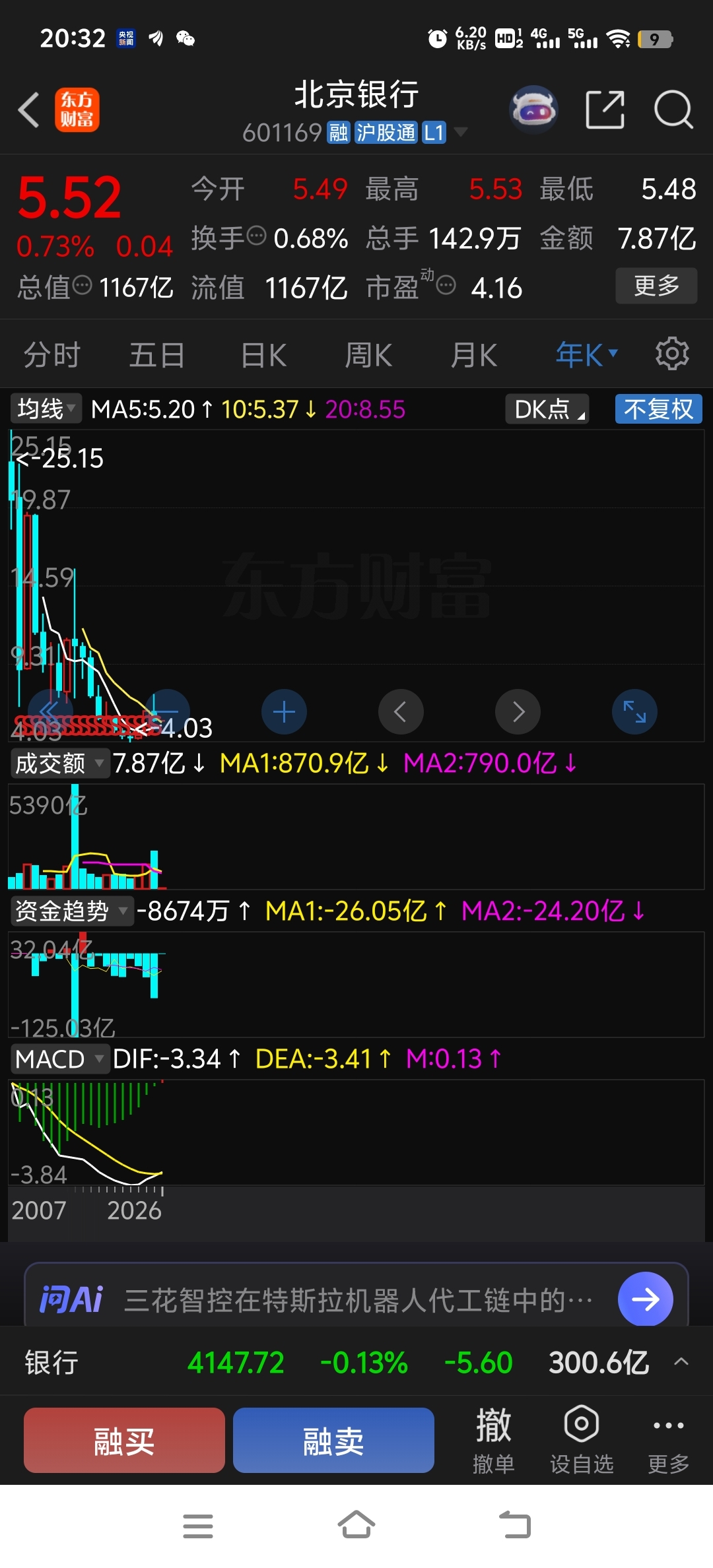 $北京银行(SH601169)$ 年线MACD终于金叉了