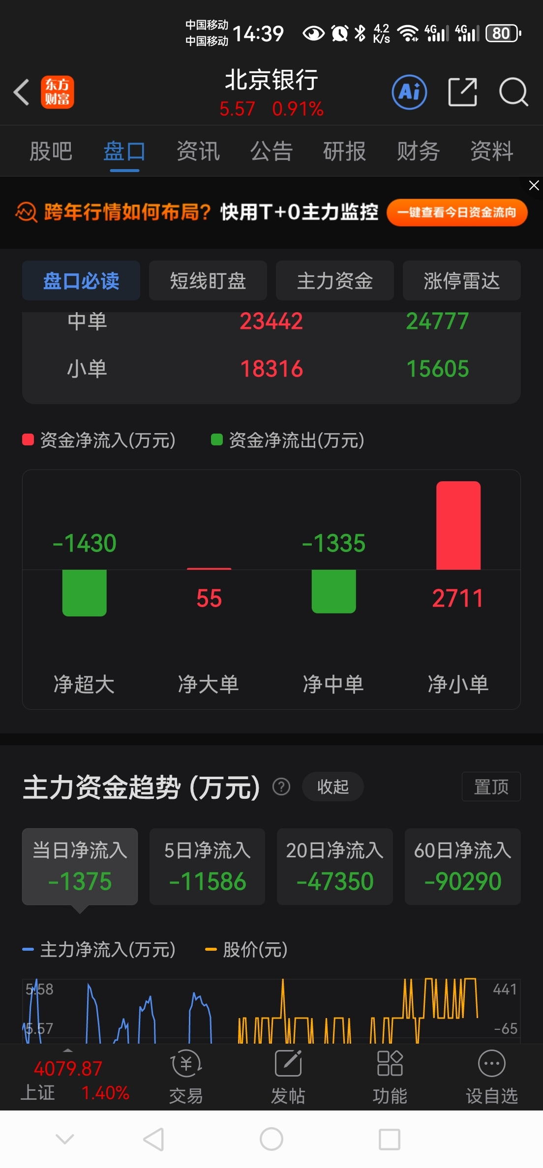 北京银行机构大资金快速流出!