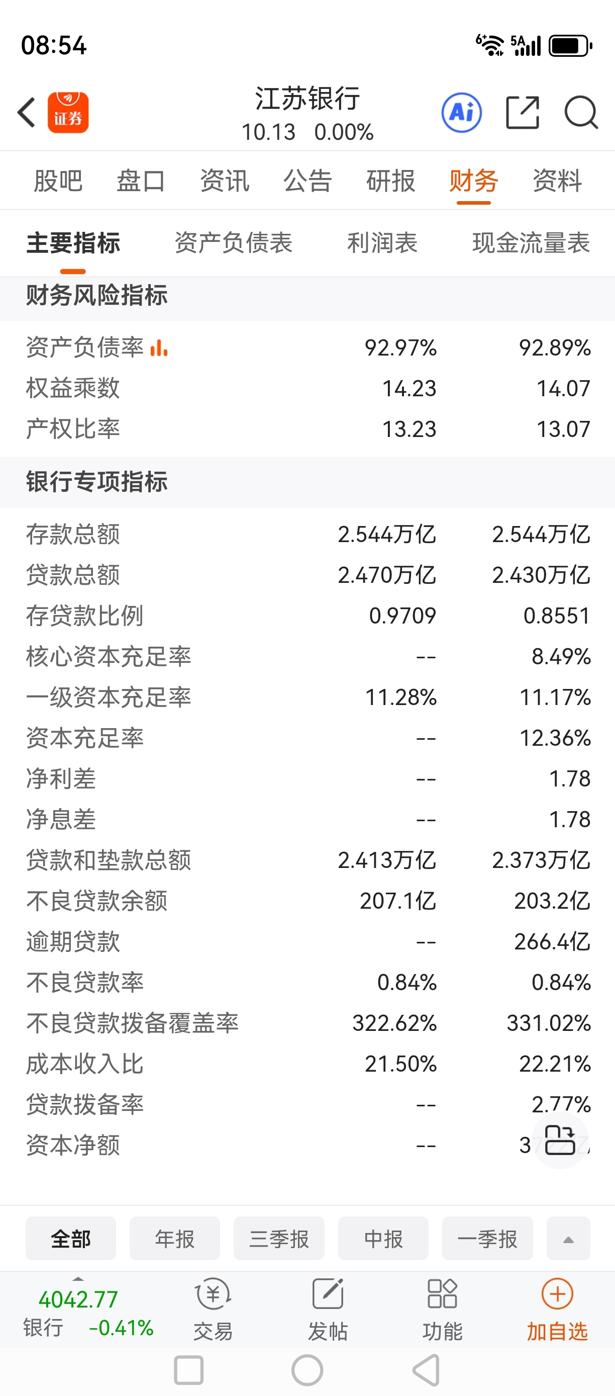 老铁们能看到江苏银行3季报的核心资本充足率吗?我这里竟然看不到数据。江苏银行中报