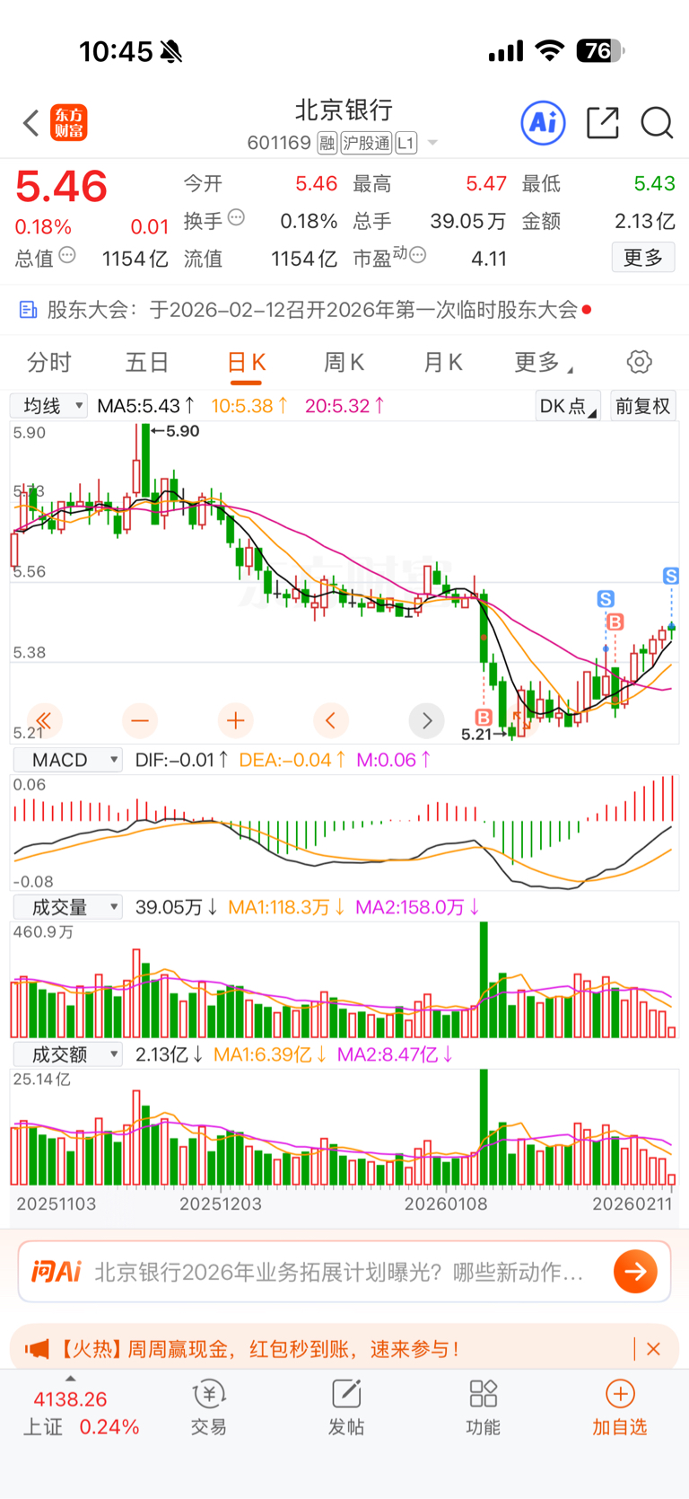 $北京银行(SH601169)$ 走了各位,年后见…