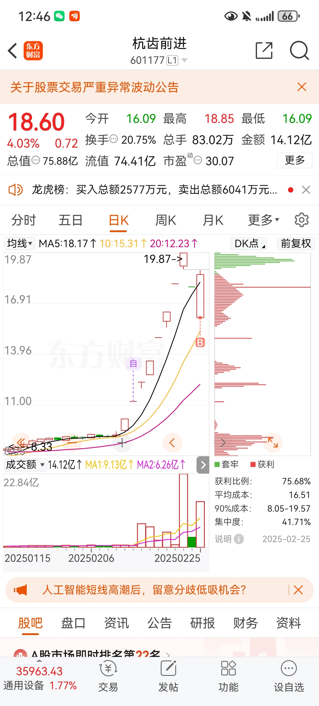 $杭齿前进(SH601177)$ 抄底成功