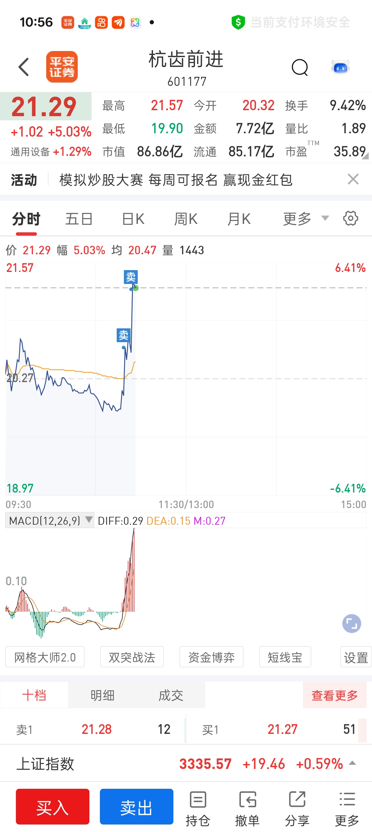 $杭齿前进(SH601177)$ 是不是卖飞了
