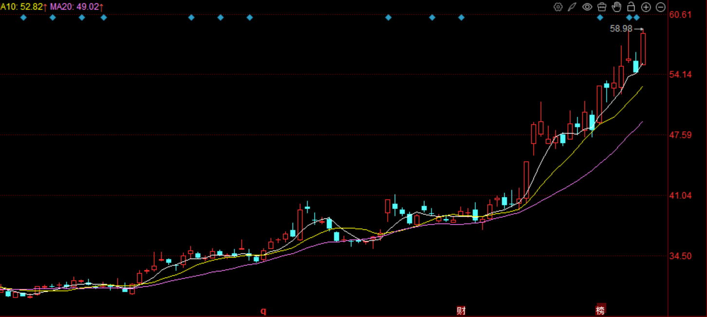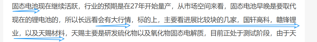 这是固态电池三剑客之一,今天也是涨幅8%左右,公司在18号表示,公司的固态电池已经小批量量产,循环寿命超过800次,目前开始供货帼际车企以及飞行汽车上,属于进展比较快的固态电池企业了。三剑客里面,国轩高科开始滞涨,天赐材料正在主升浪中,而赣锋锂业是走的趋势,所以它一般不会涨停,但是沿着十日线慢慢上行,从量能来看,赣锋锂业现在才67亿的量能,还没有放出天量,所以暂时趋势都不会反转,突破60快就在这几天了,策略上,持股的话,格局为主,等待走势加速,或者滞涨,或者放出天量才是落袋的时候。