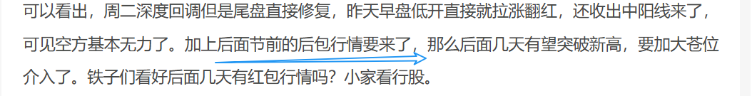 前面几天才说了,节前节后可能会出现红包行情,今天直接就来了,经过一段时间的震荡,多头也是压抑太久,今天直接反扑,指数最高冲到1.3%,虽然有所回落,但是情绪起来了,明天又是节前最后一个交易日,空方基本都释放了,所以大概率要延续今天的涨势,然后就愉快过节了,明天最好是持股过节,根据经验,一般持股过节性价比比较高。