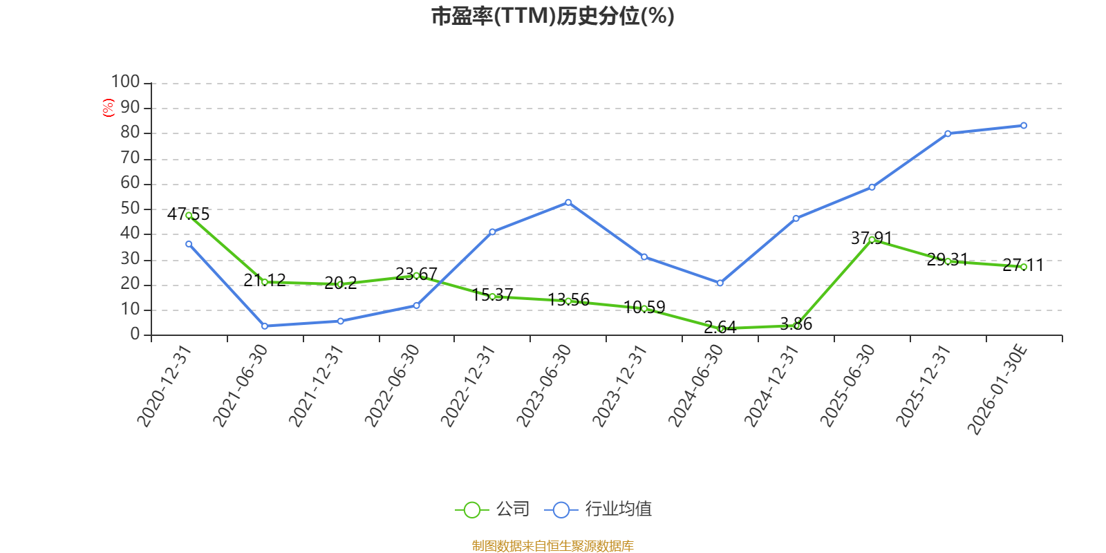 以本次披露业绩预告均值计算,公司近年市盈率(TTM)图如下所示: