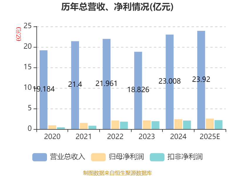 中证智能财讯杭齿前进(601177)1月30日晚间披露2025年度业绩预告,预计2025年实现营业收入23.42亿元至24.42亿元,同比增长1.79%-6.13%;归母净利润2.47亿元至2.63亿元,同比增长2.57%-9.21%;扣非净利润预计2.12亿元至2.23亿元,同比增长2.26%-7.57%。以1月30日收盘价计算,杭齿前进目前市盈率(TTM)约为25.7倍-27.37倍,市净率(LF)约2.42倍,市销率(TTM)约2.83倍。