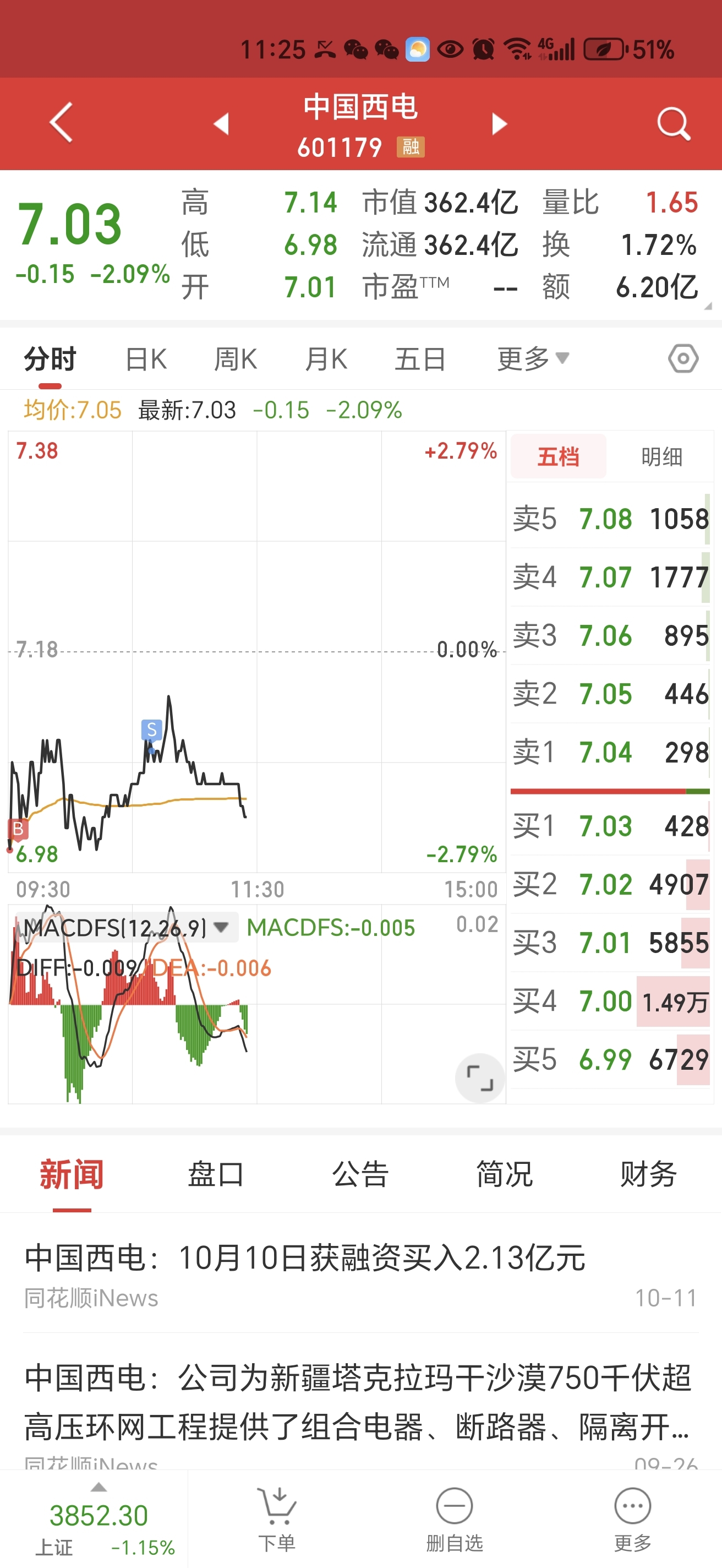$中国西电(SH601179)$ 跌吧,下午接回来