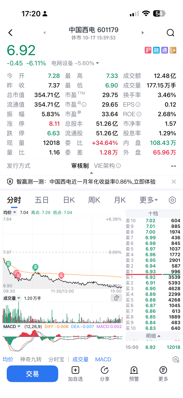 $中国西电(SH601179)$ 做T200手,再增持200手.现在半仓多一点点.继续看大戏.仓位管理非常重要.股价在6.3之前不会加仓了.但会盘中做T.