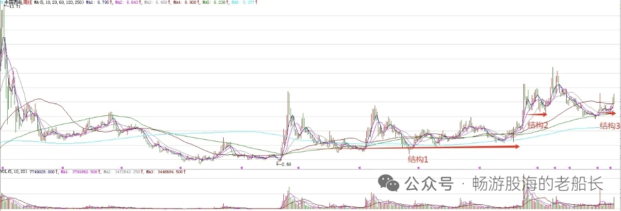 中国西电,周线级别的走势来看,上周的中阳线,实现了图中标注的结构2的有效突破,意