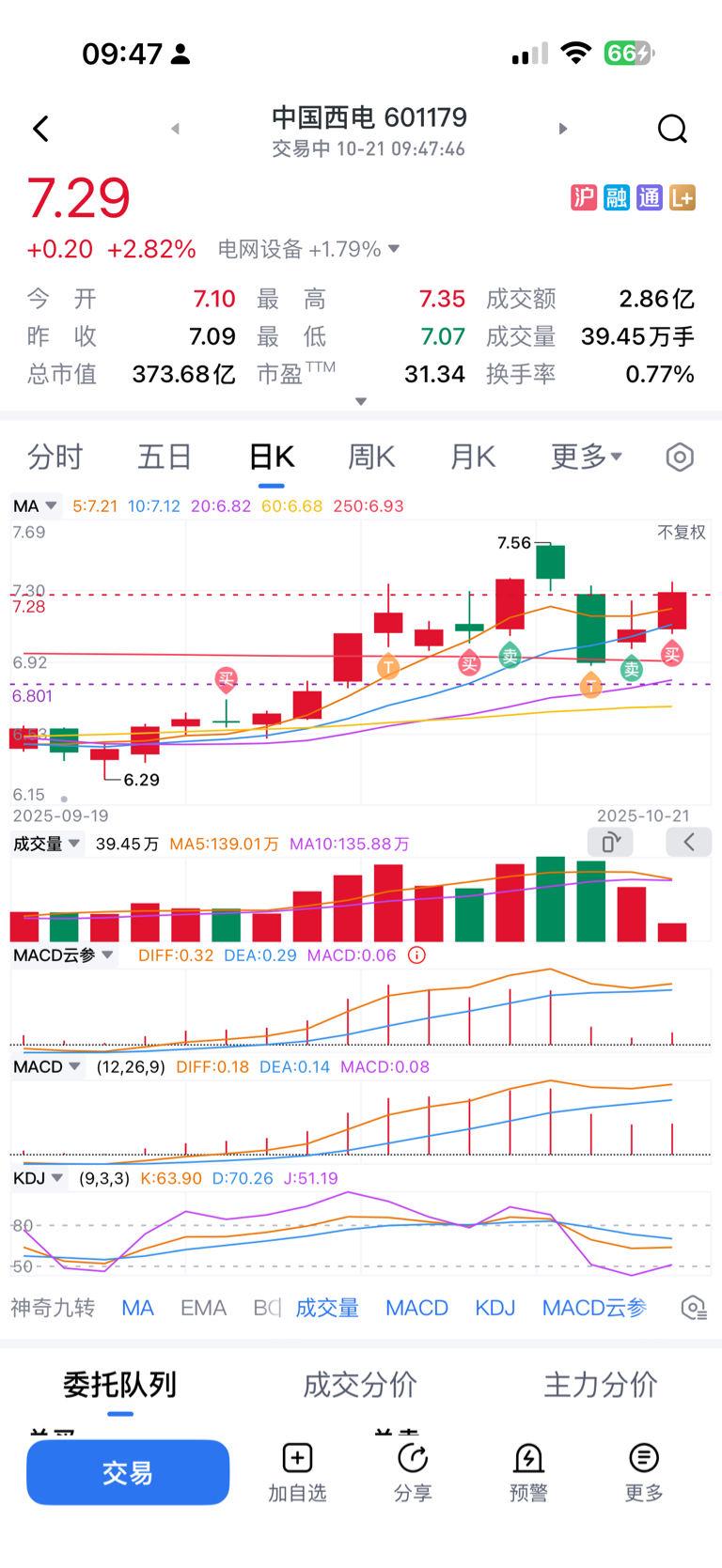 $中国西电(SH601179)$ 天踏了,卖点成买了.