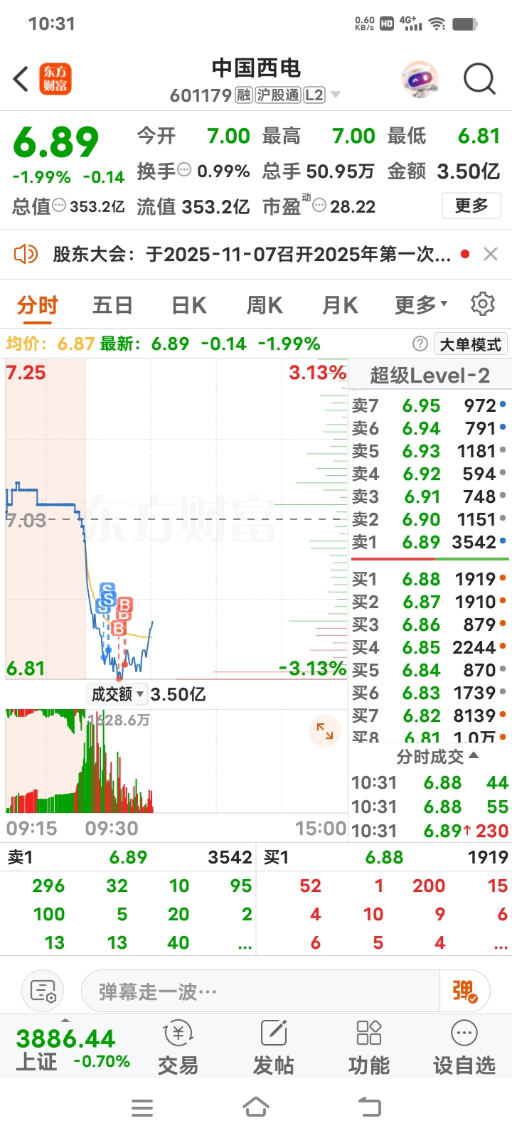 $中国西电(SH601179)$ 上午有多少割肉t飞了的?
