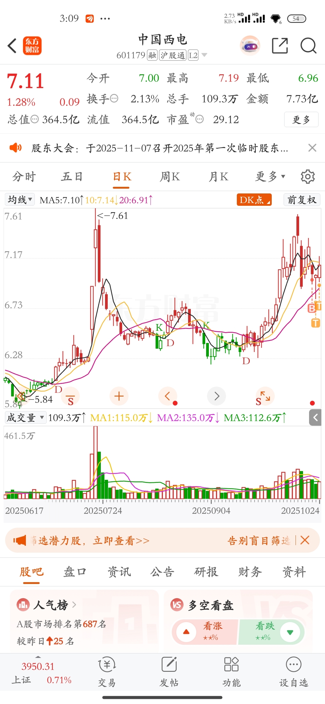$中国西电(SH601179)$ 建仓西电,目前成本6.92