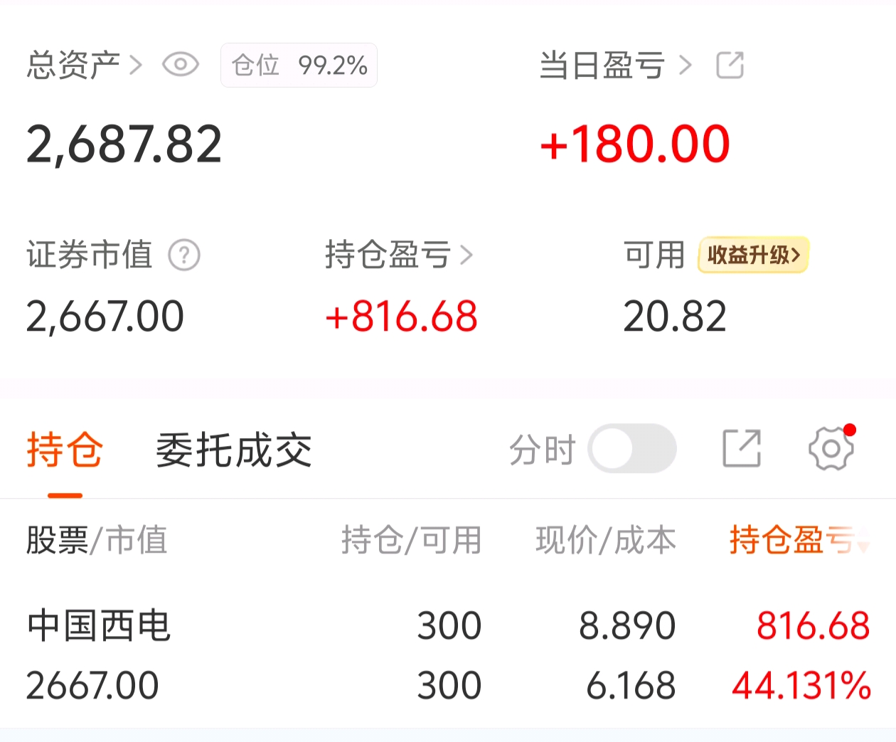 刚毕业手头没什么钱,就投了两千,感谢中国西电,也是赚到一点小钱。