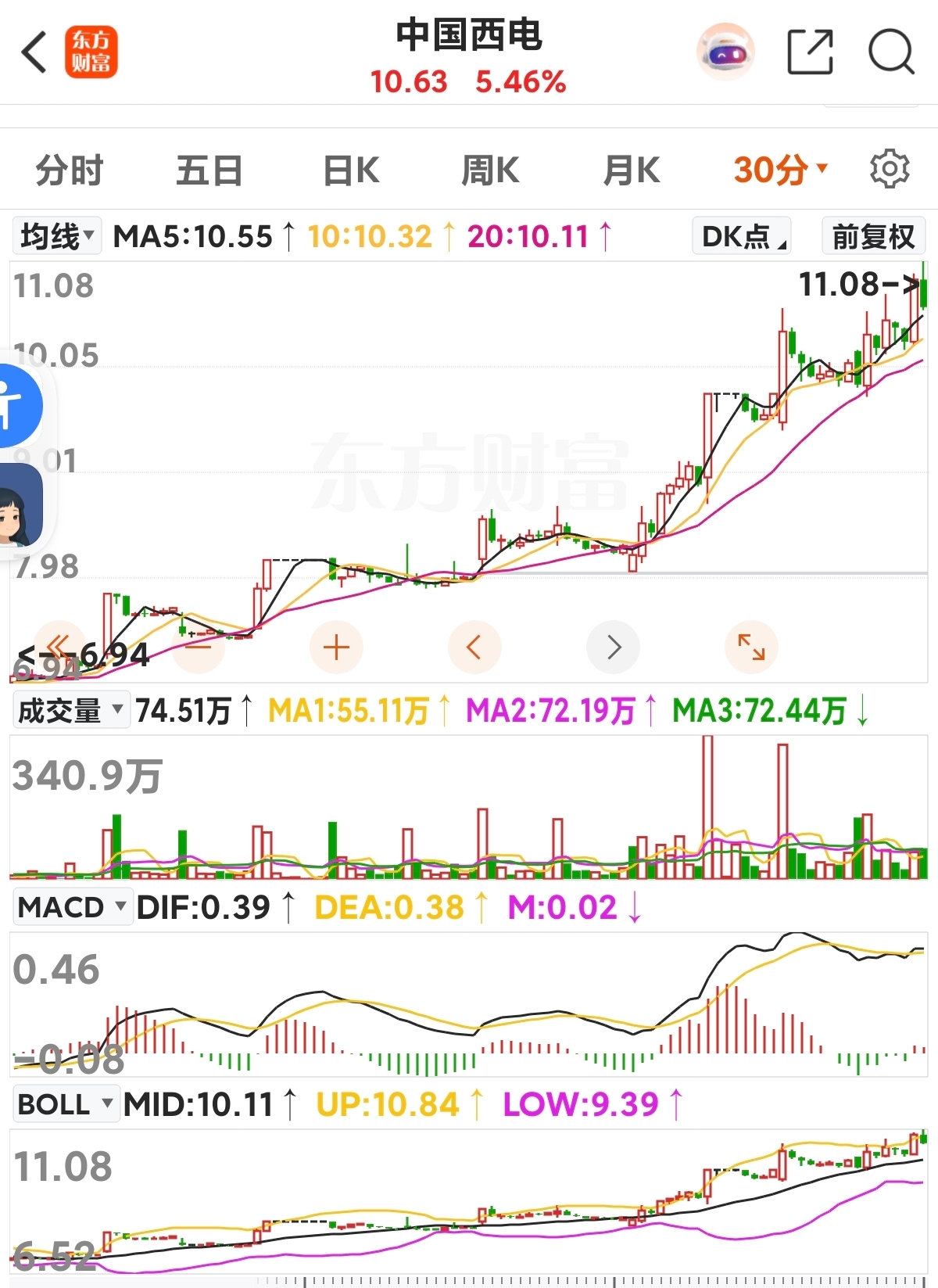 $中国西电(SH601179)$ 布林线开口向上,短线仍有冲高欲望。