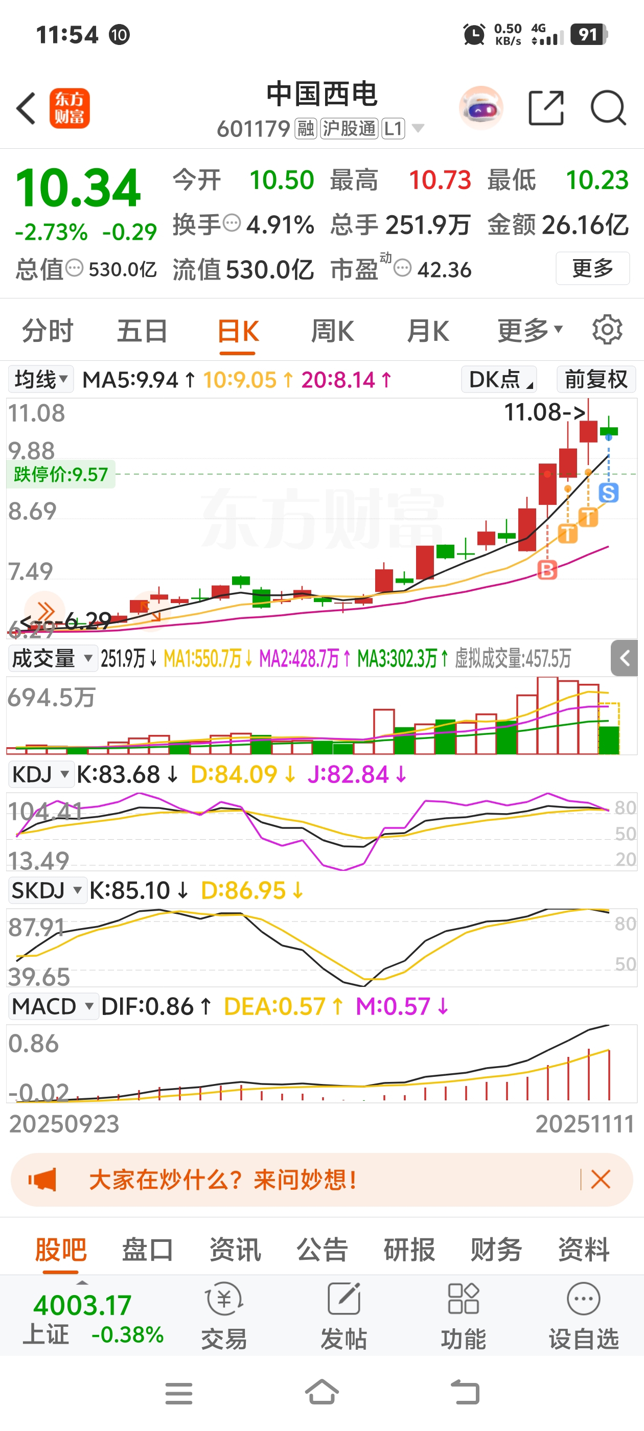 $中国西电(SH601179)$ 早上走了,不知道对错,,,下午看情况可有操作