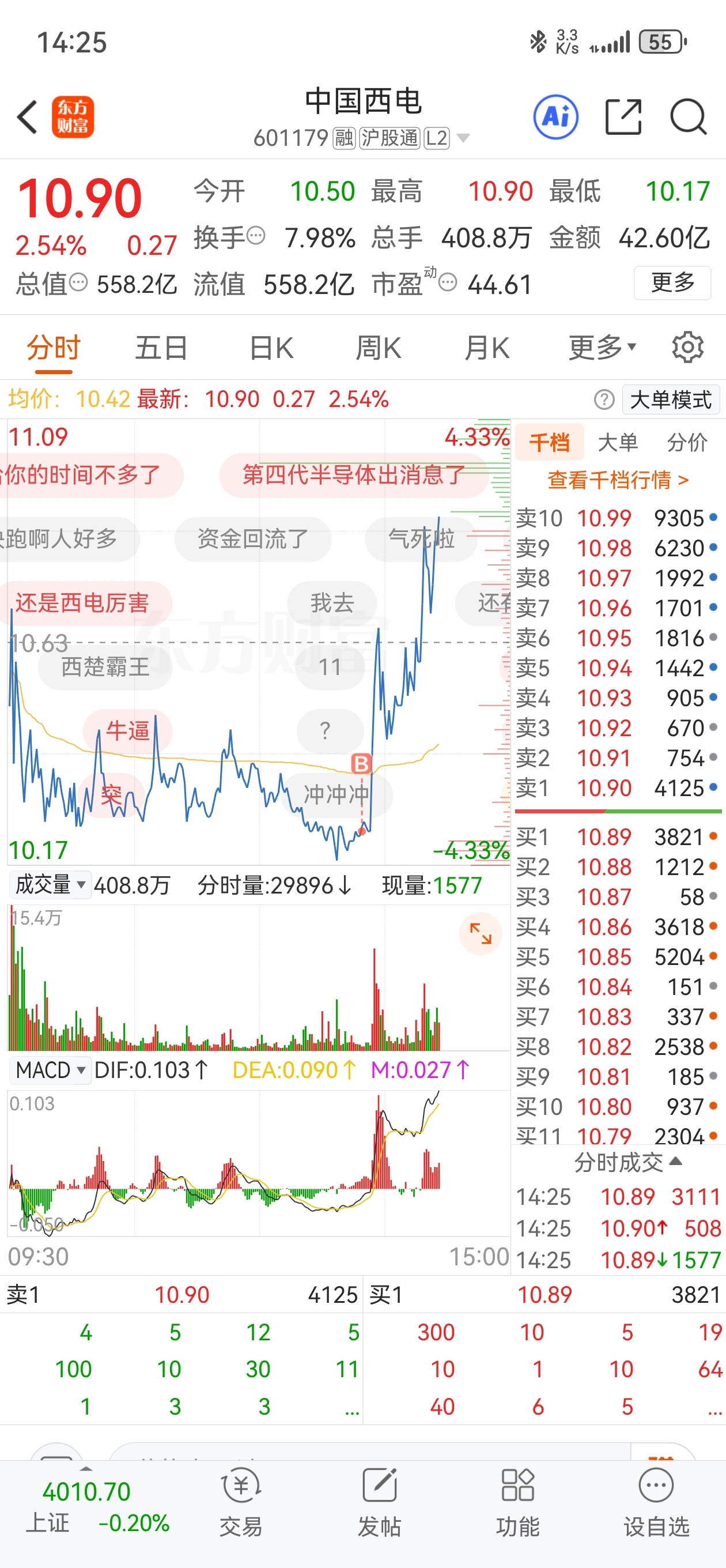 $中国西电(SH601179)$ 啥意思啊!我只是买了400股,不是我拉的。