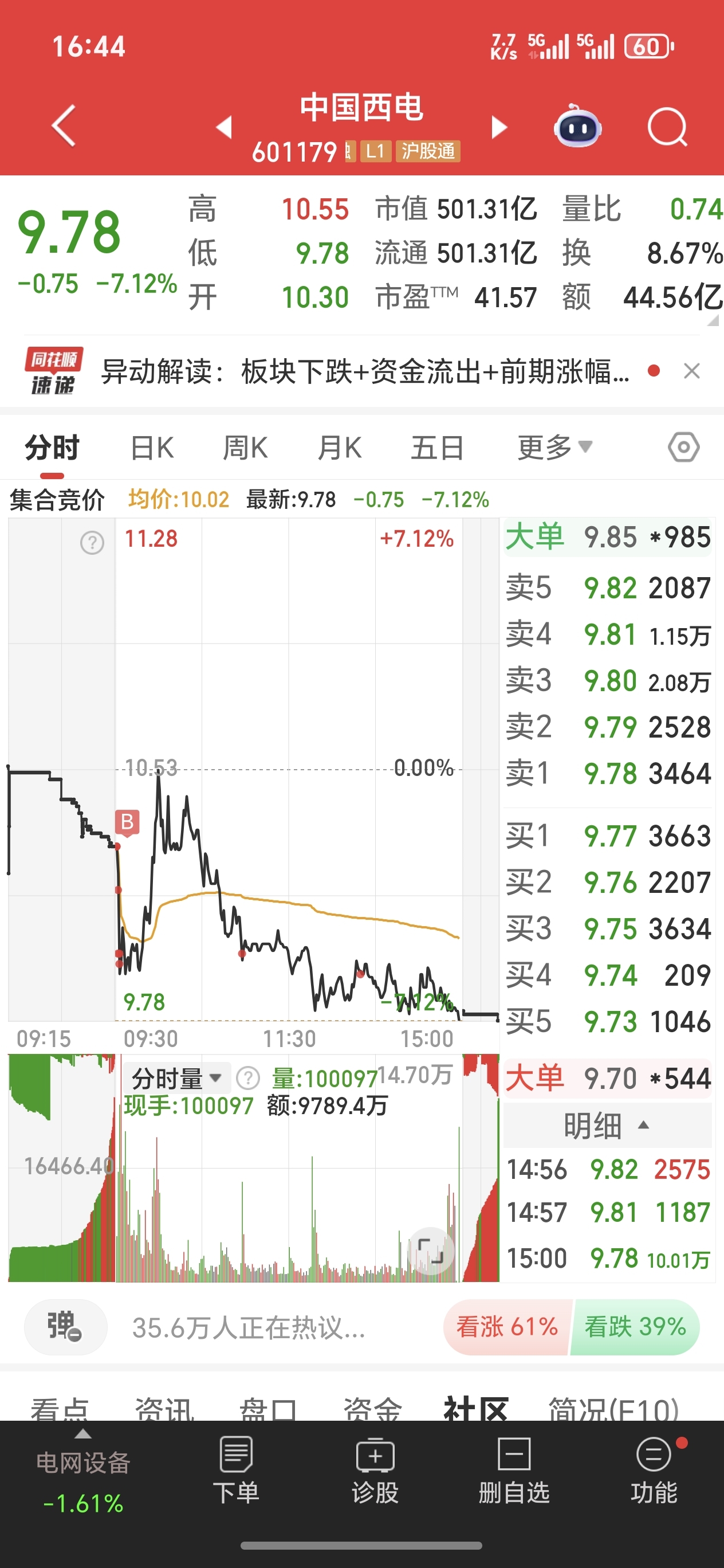 $中国西电(SH601179)$ 今天估计好多人割了,不到目标价打死不走,越跌越买