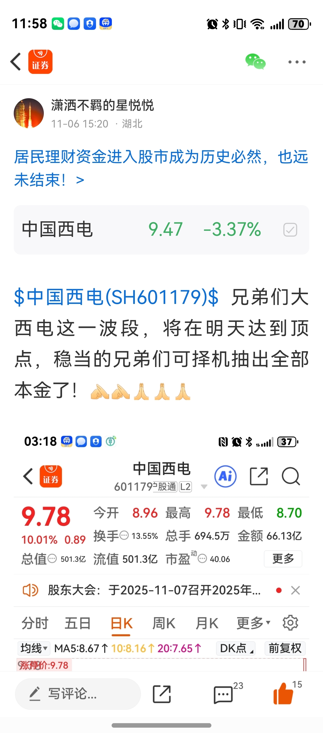 哈哈兄弟们大西电的这波段顶都逃了不?