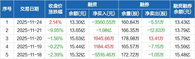 中国西电:融资净偿还3560.55万元,融资余额13.3亿元(11-24)