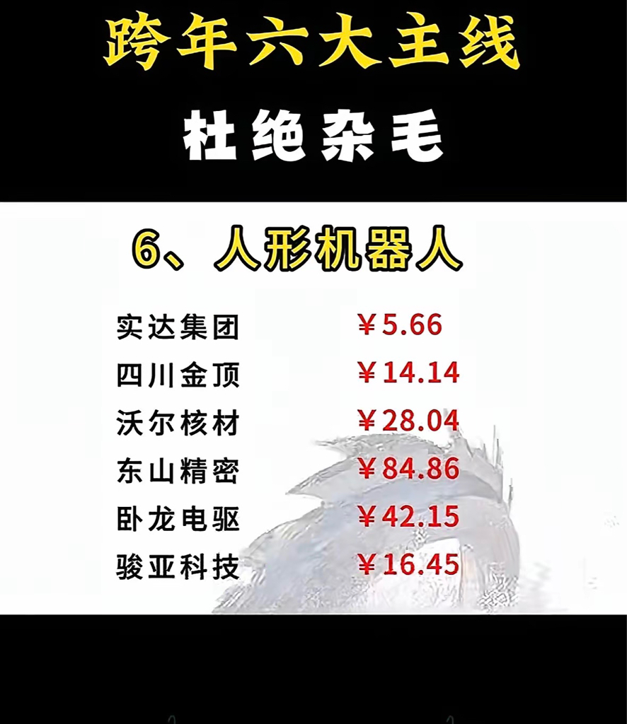 跨年投资认准六大主线,摒弃非核心标的,人形机器人赛道新动向值得重点关注。