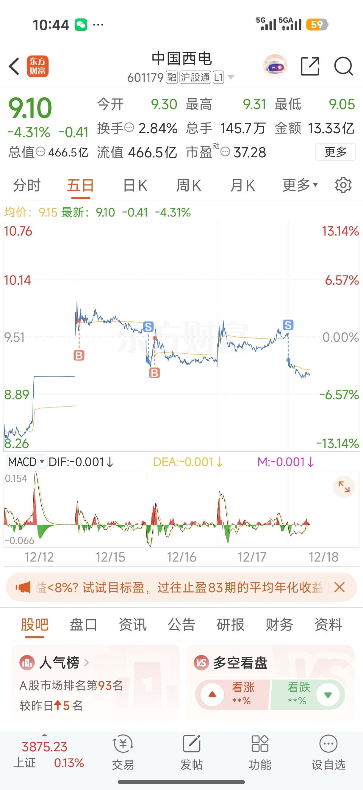 $中国西电(SH601179)$ 后悔昨天没有卖了你