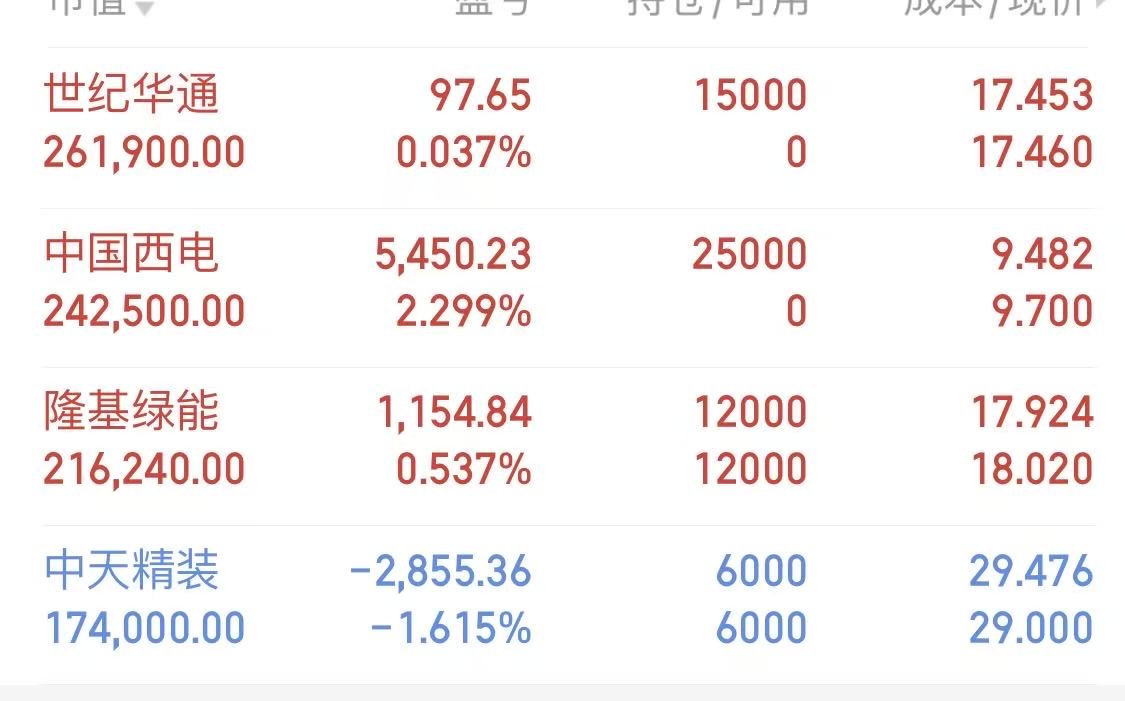 新上车的其他的都没动。中天下跌三个多点一直震荡有洗盘嫌疑,如果是超过四个多点,那