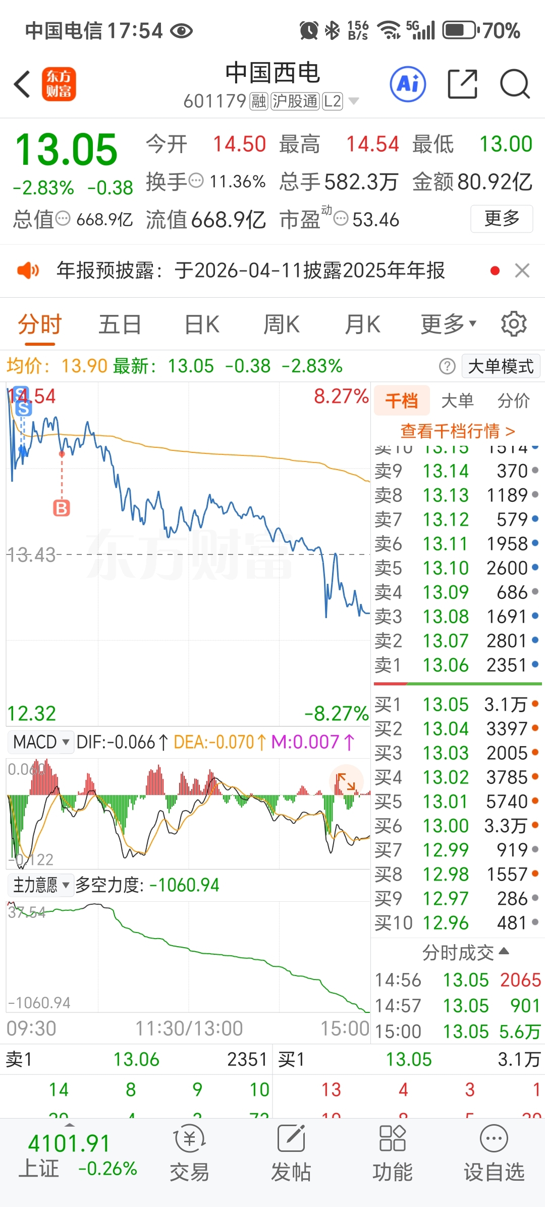 $中国西电(SH601179)$ 早上还以为卖飞了,下午收盘一看,我Cao逆天了