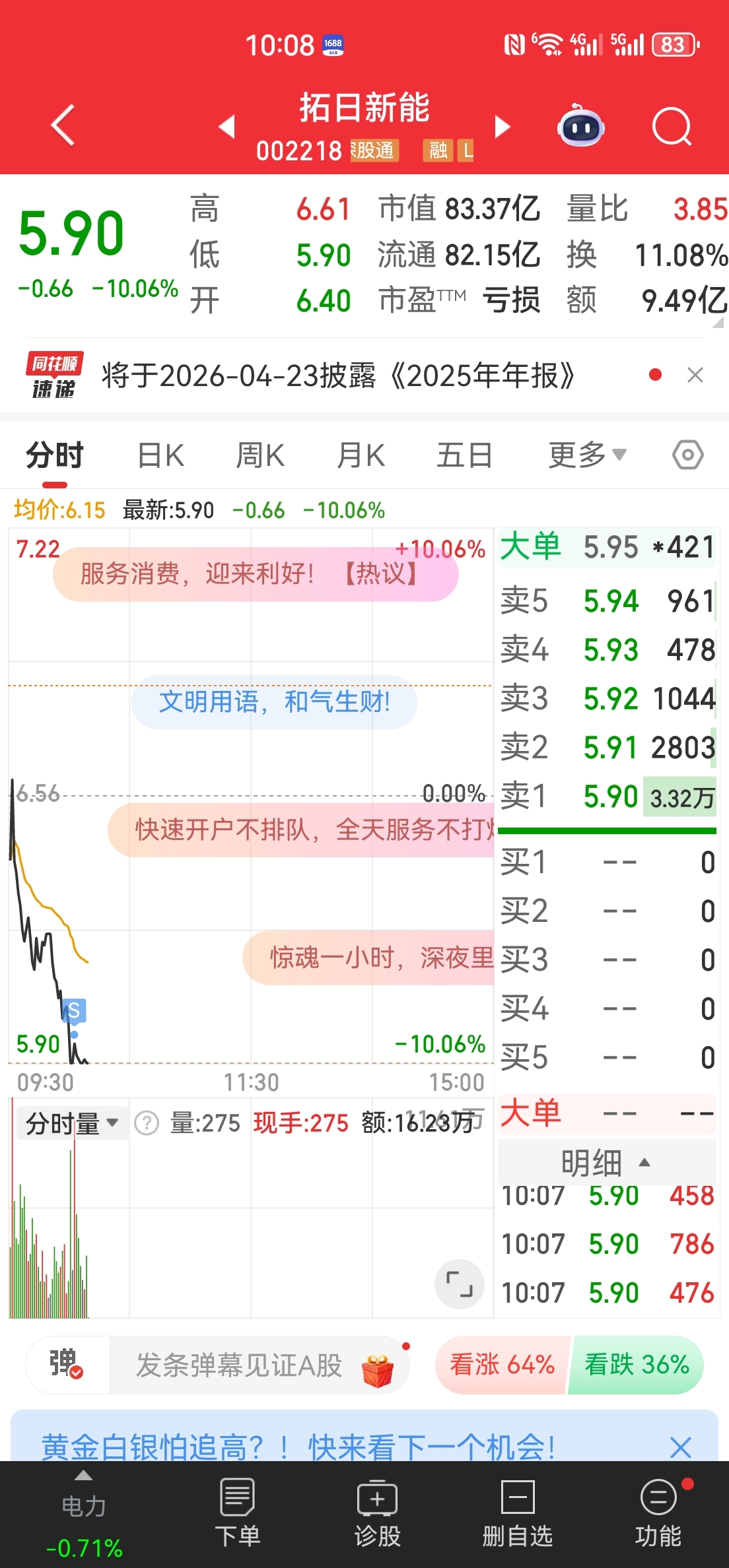 温馨提示: 1.根据《证券法》规定,禁止编造、传播虚假信息或者误导性信息,扰乱证券市场;2.用户在本社区发表的所有资料、言论等仅代表个人观点,与本网站立场无关,不对您构成任何投资建议。用户应基于自己的独立判断,自行决定证券投资并承担相应风险。《东方财富社区管理规定》