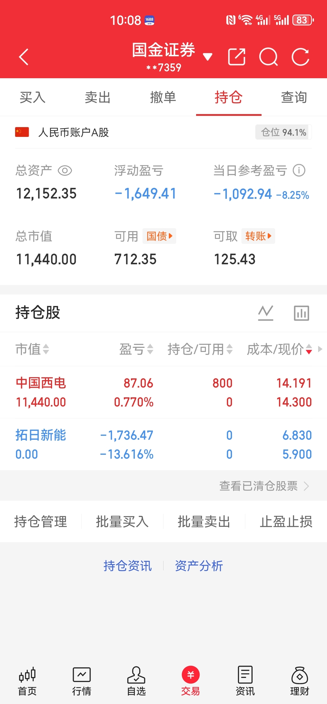 一万到一百万第72天,拓日-9割了,大面。-5.5买了中国西电。
