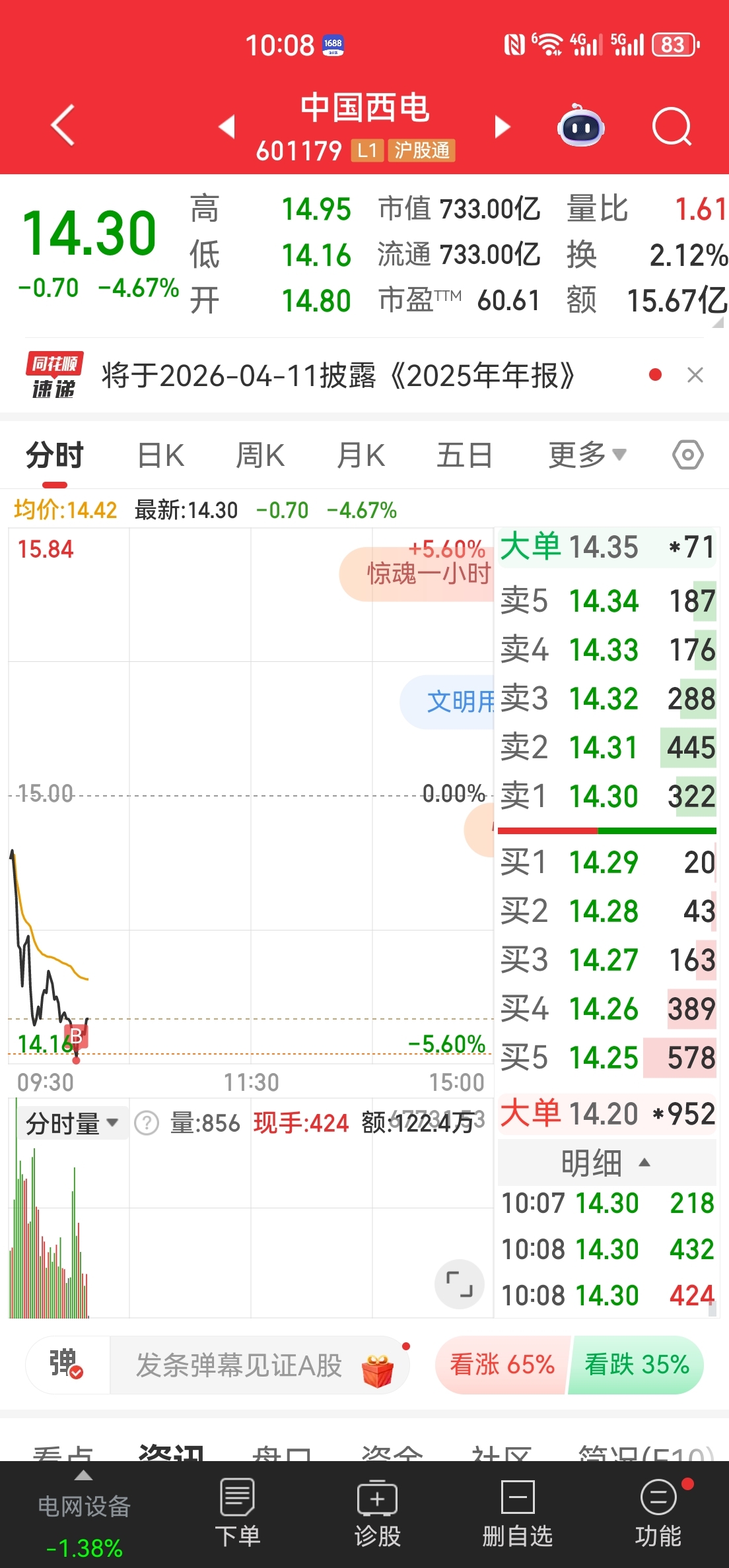 $中国西电(SH601179)$ 一万到一百万第72天,拓日-9割了,大面。-5.5买了中国西电。