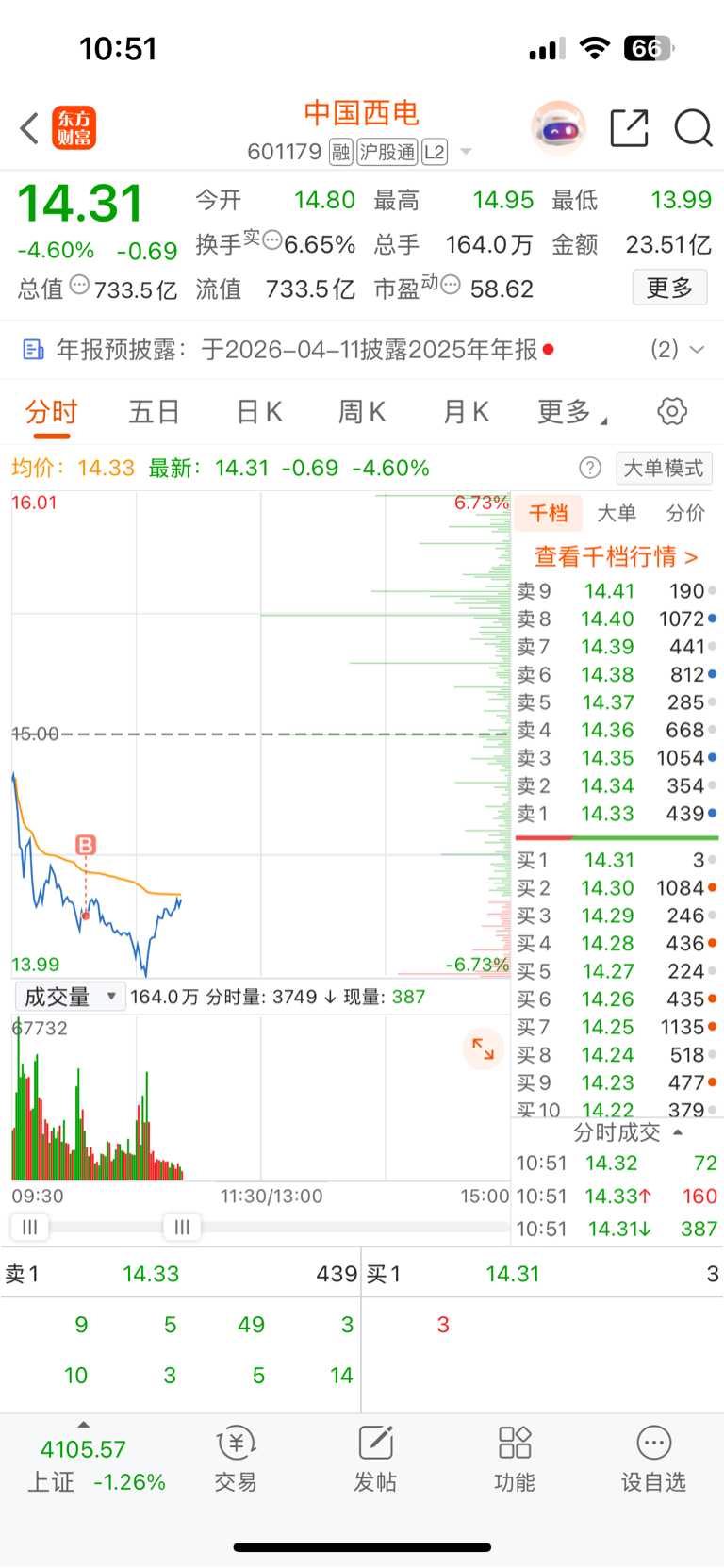 $中国西电(SH601179)$ 真没想到今天大盘会跌90个点,实在是太可怕了。整点西电,等人来护盘