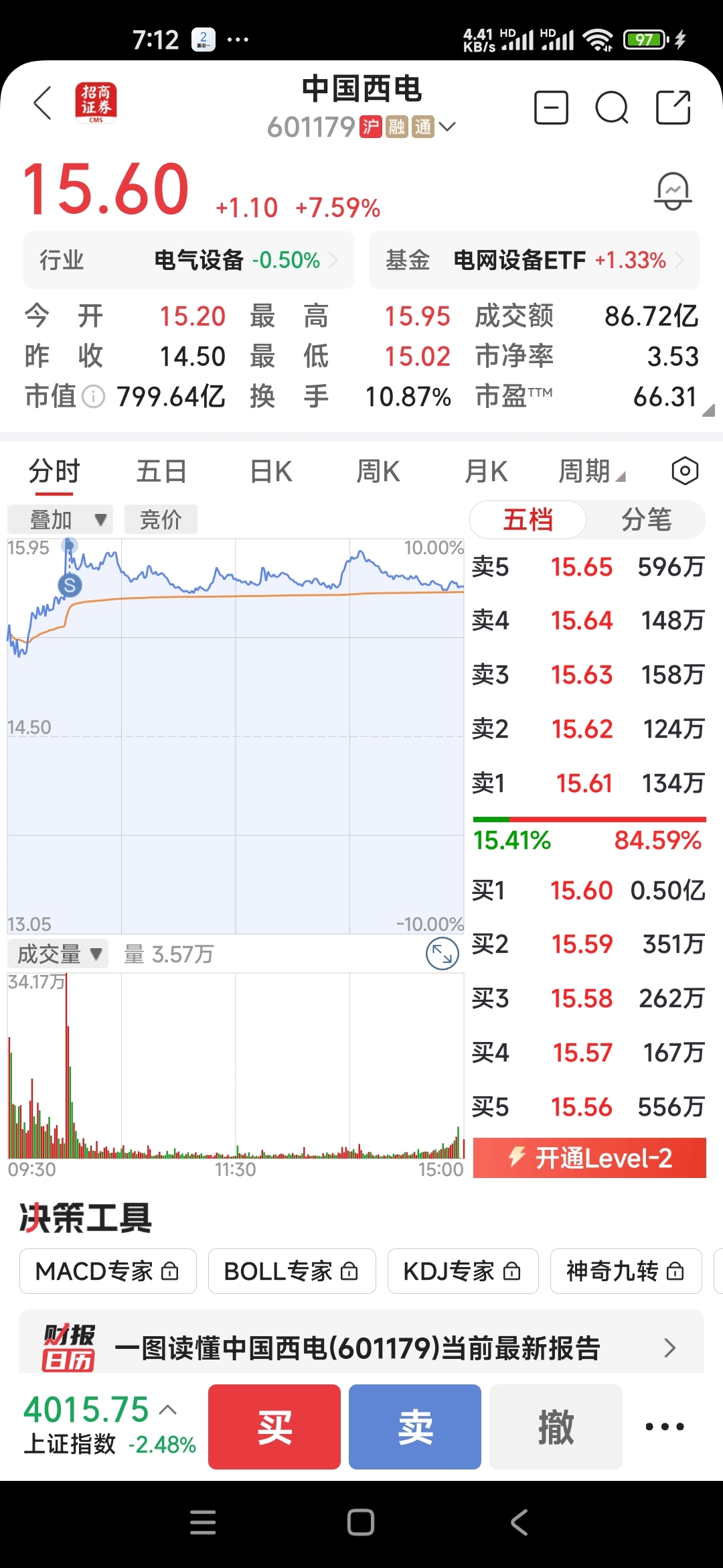 $中国西电(SH601179)$ 15元成本,涨停板炸板,第二次15.95清仓,