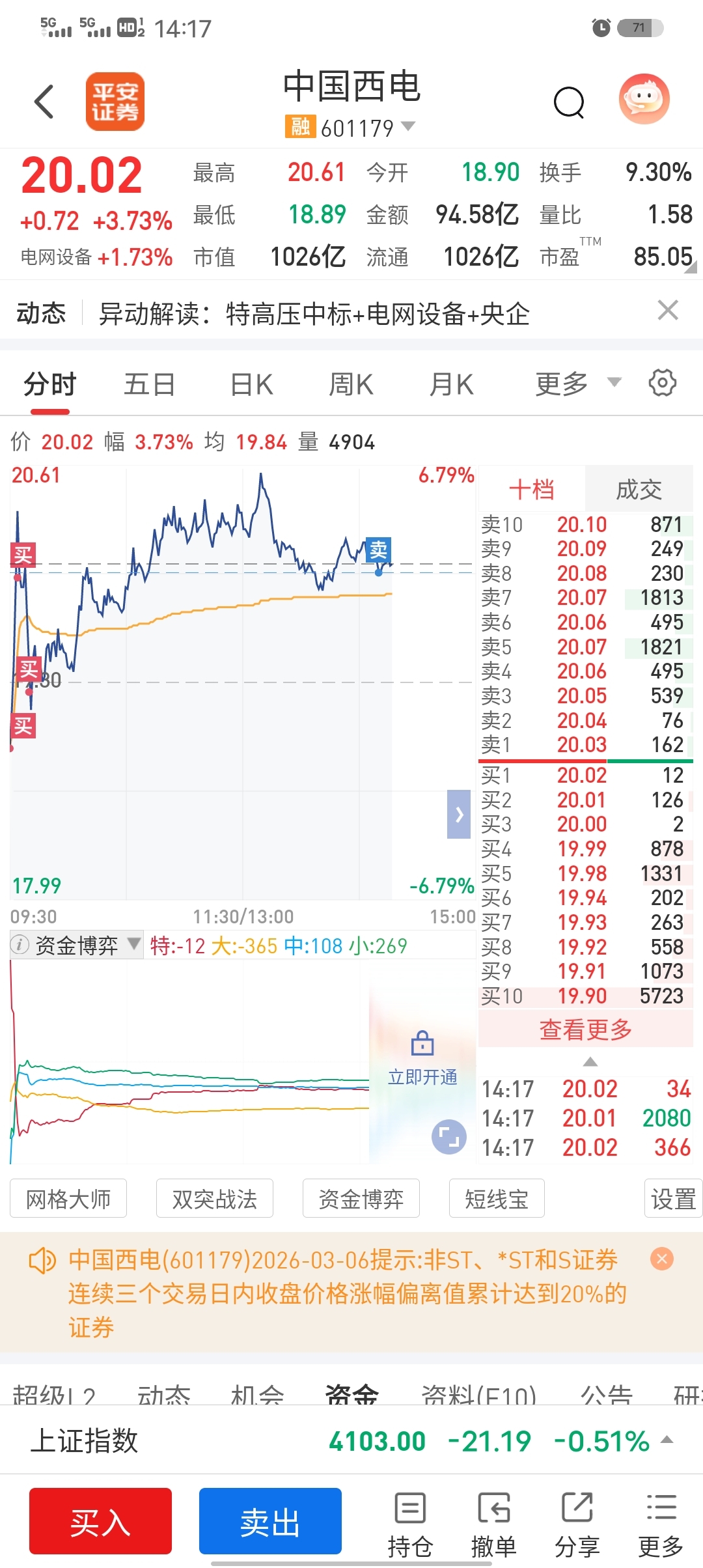 $中国西电(SH601179)$ 不等了,T了。等跌下来再说。感谢接盘的。