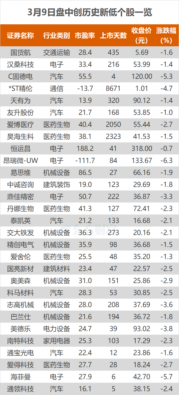 东方财富Choice数据显示,今日有29只个股盘中股价创历史新低。