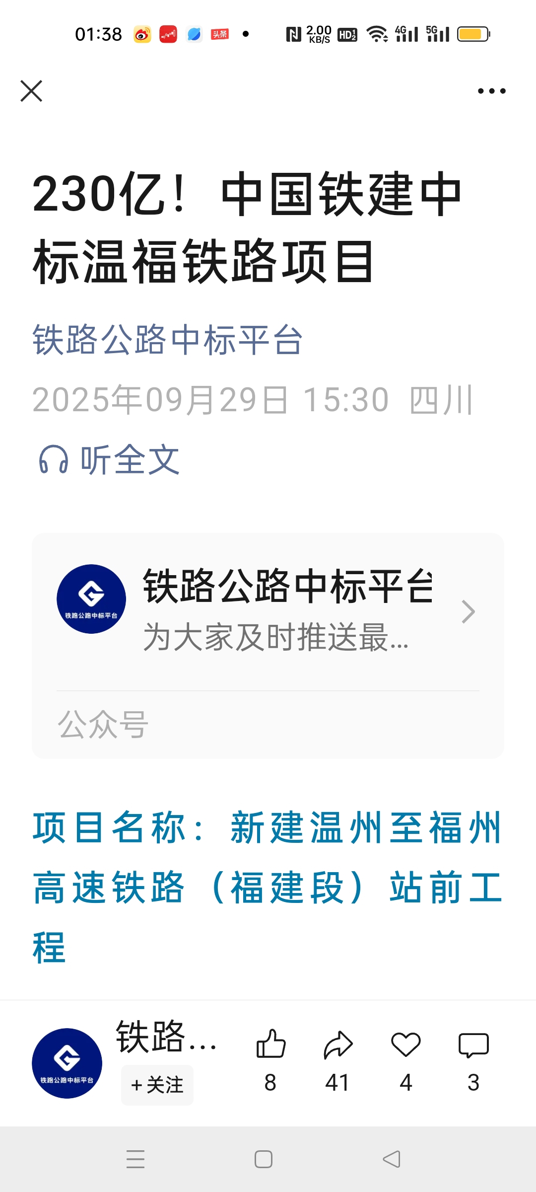 $中国铁建(SH601186)$ 又中标