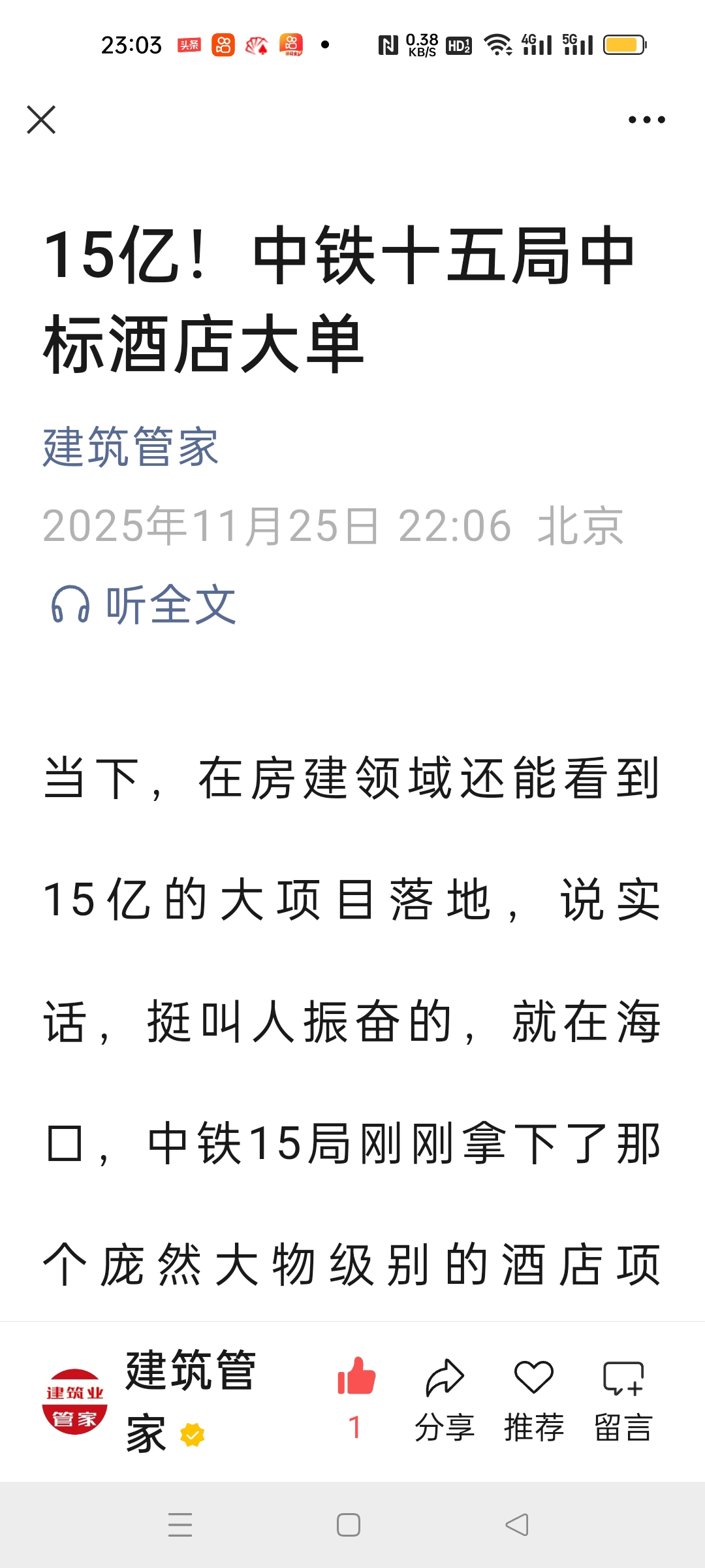 $中国铁建(SH601186)$ 铁建十五局又中标