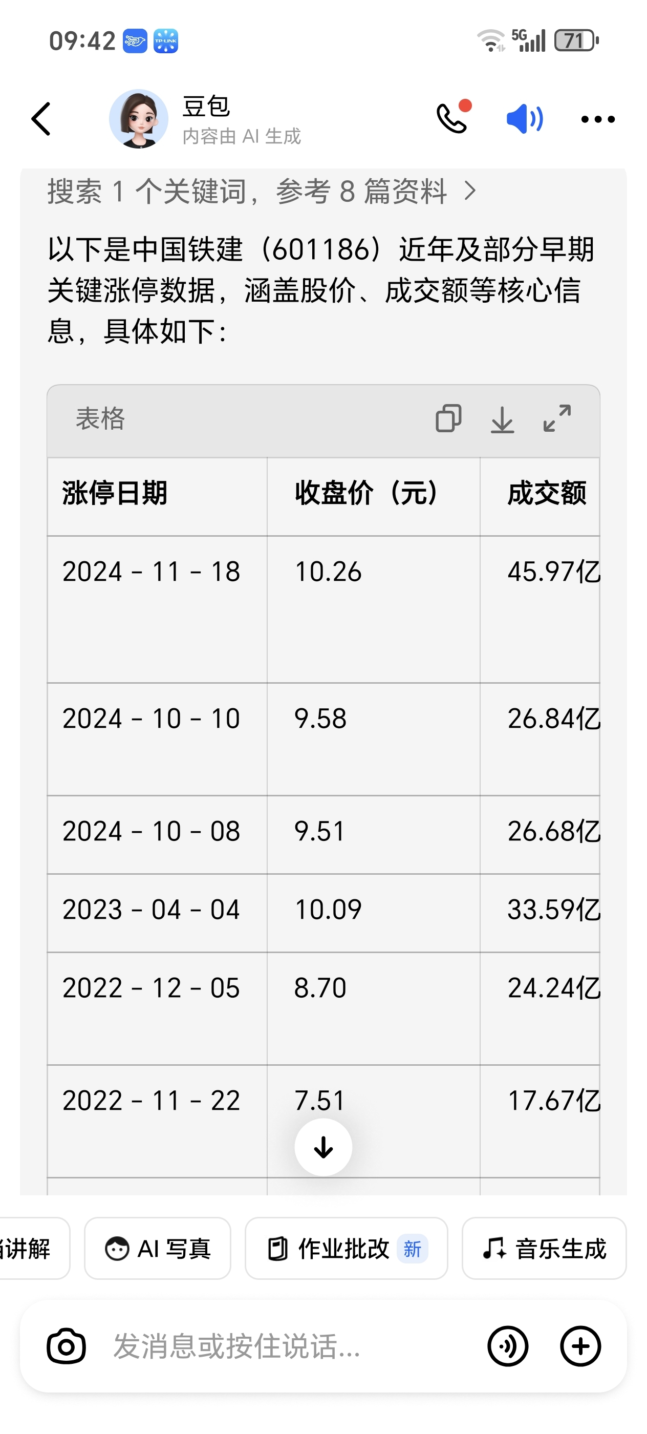 $中国铁建(SH601186)$ 小建建最近每年涨停,今年还没有