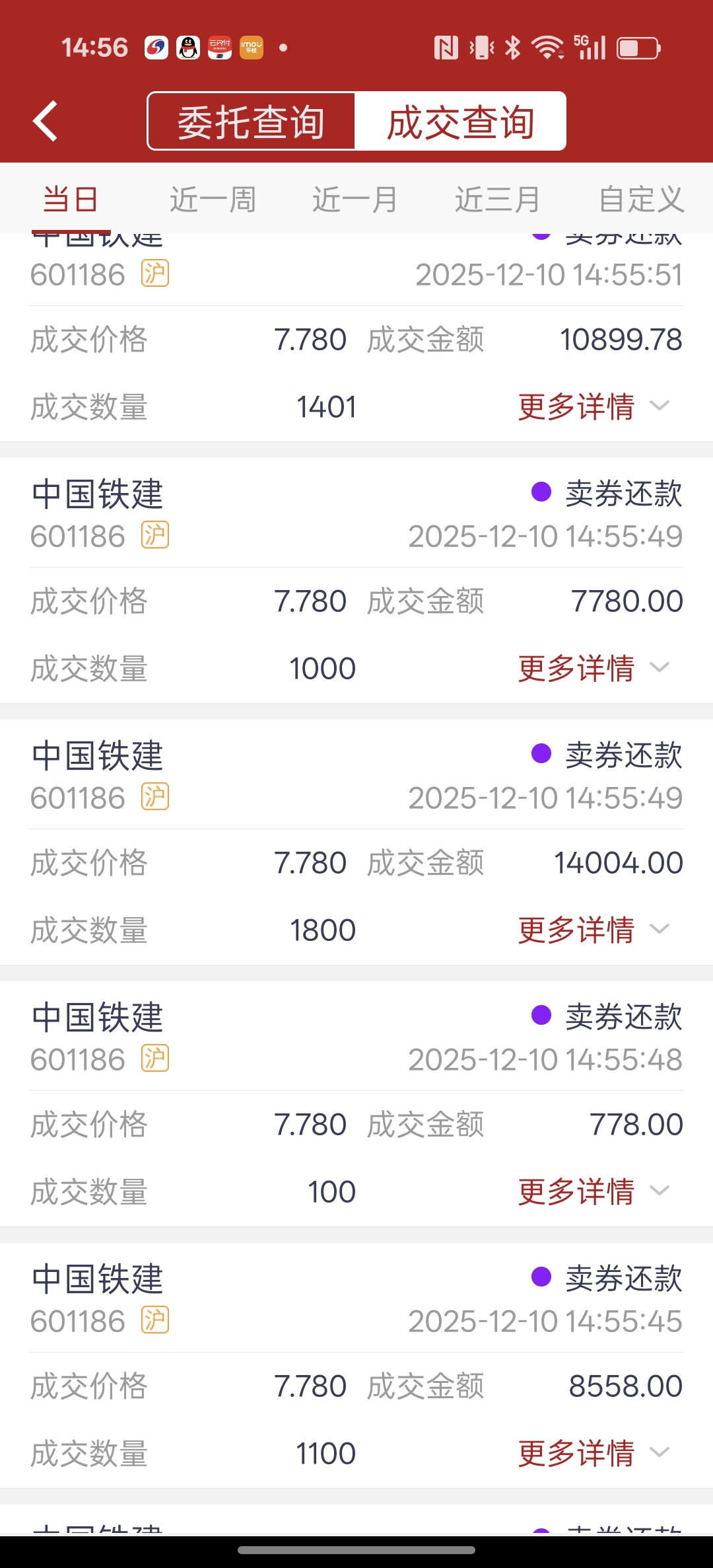 $中国铁建(SH601186)$ 终于成交了!