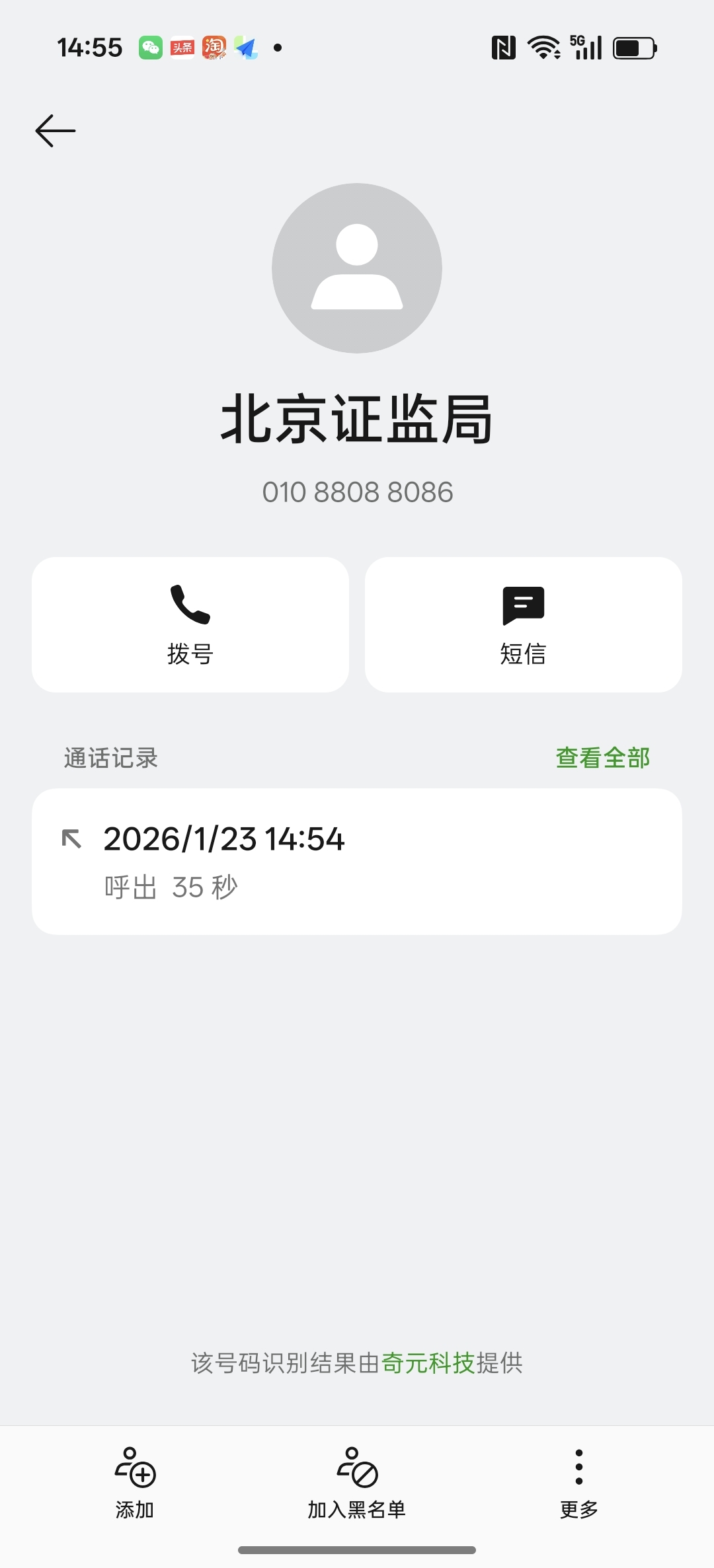 刚才又打个北京证监局的,他们说得北京证监会管这个事儿,接着查电话