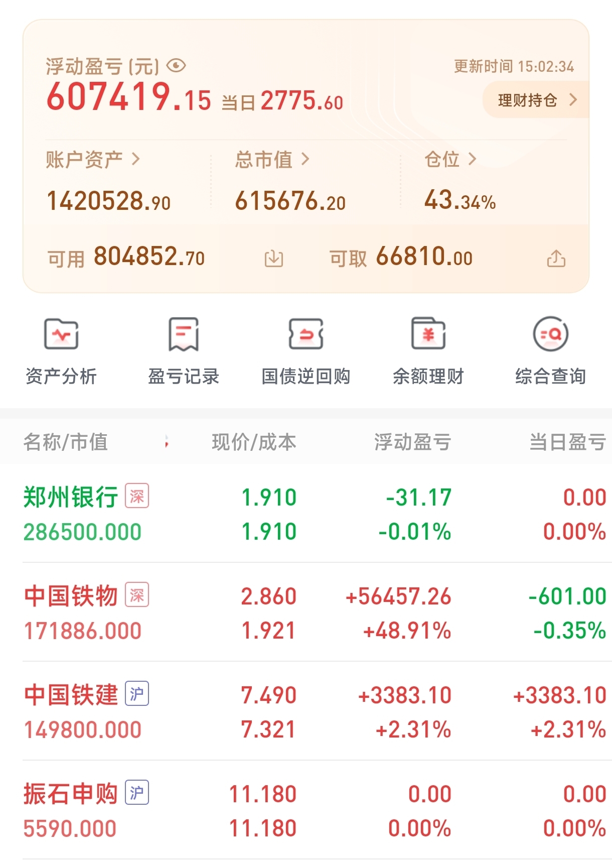 你比中铁现在逊这么多吗以前你是它大哥啊,今天建了个底仓