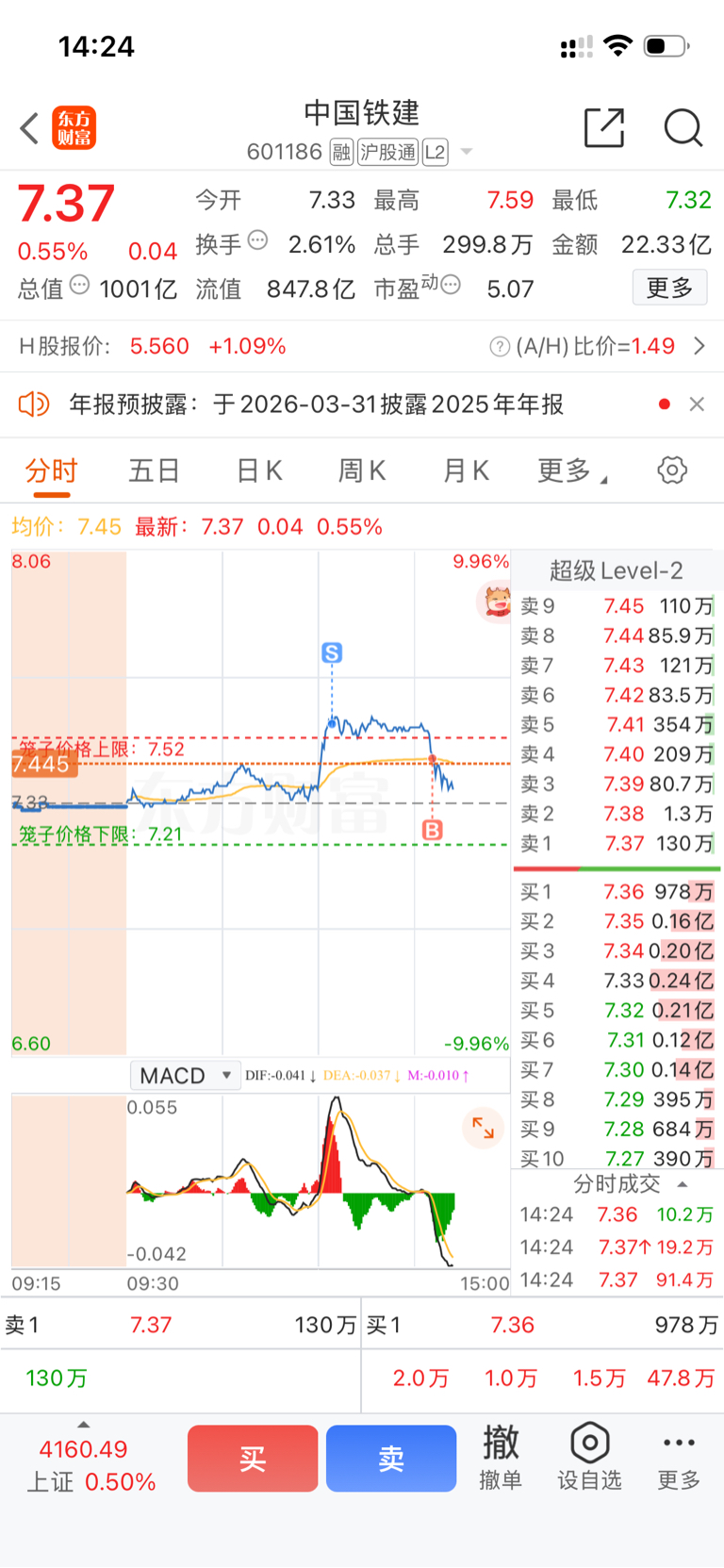 $中国铁建(SH601186)$ 想卖点成了买,诶,无语啊