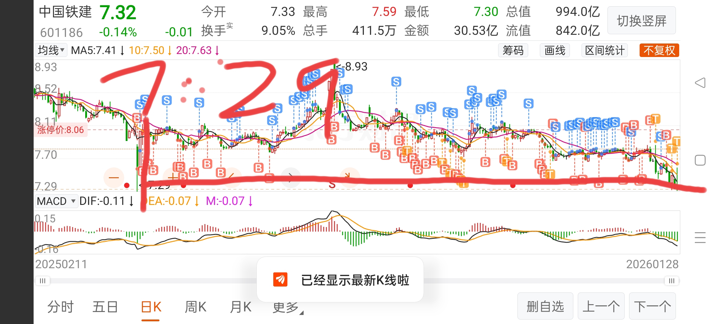 看2025年4月7号最低点7.29能守住么!如果守住!反弹到8元附近!要不6元见
