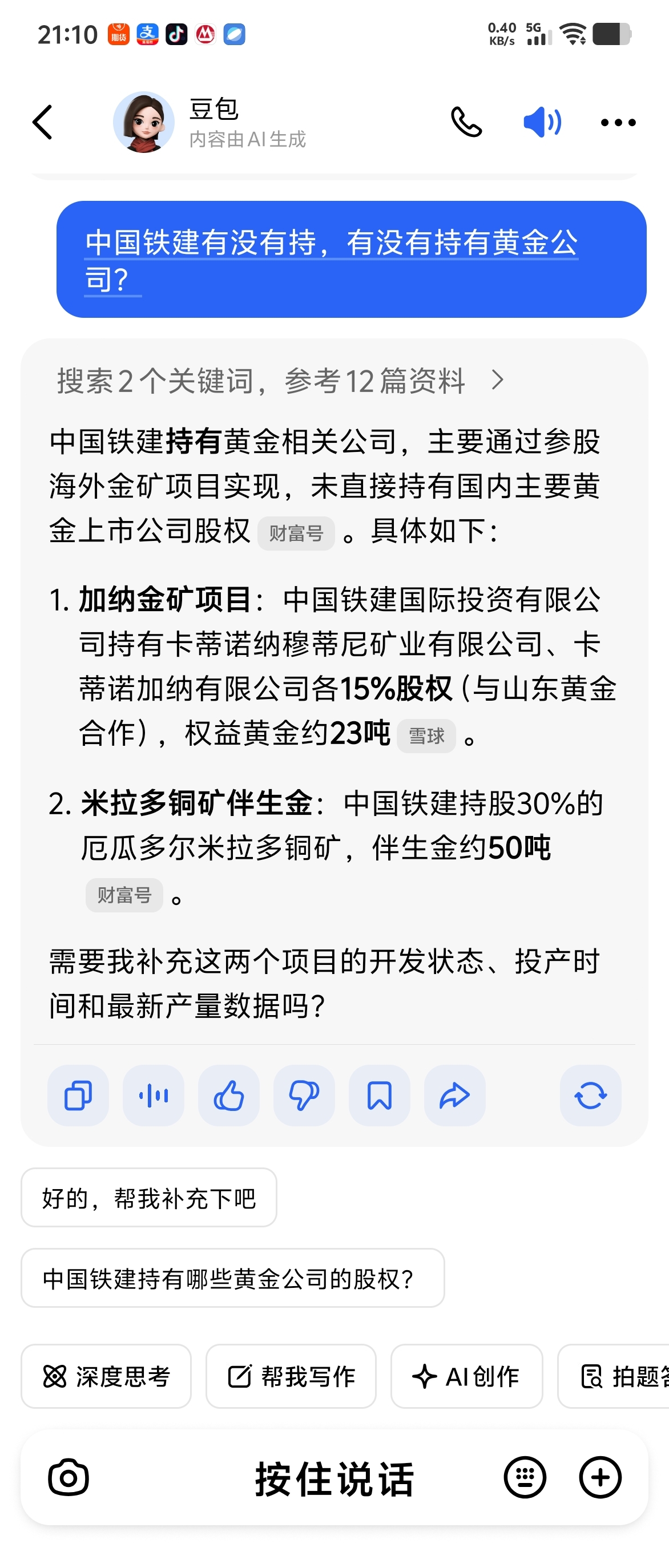 $中国铁建(SH601186)$ 持有这么多黄金什么股票还大跌