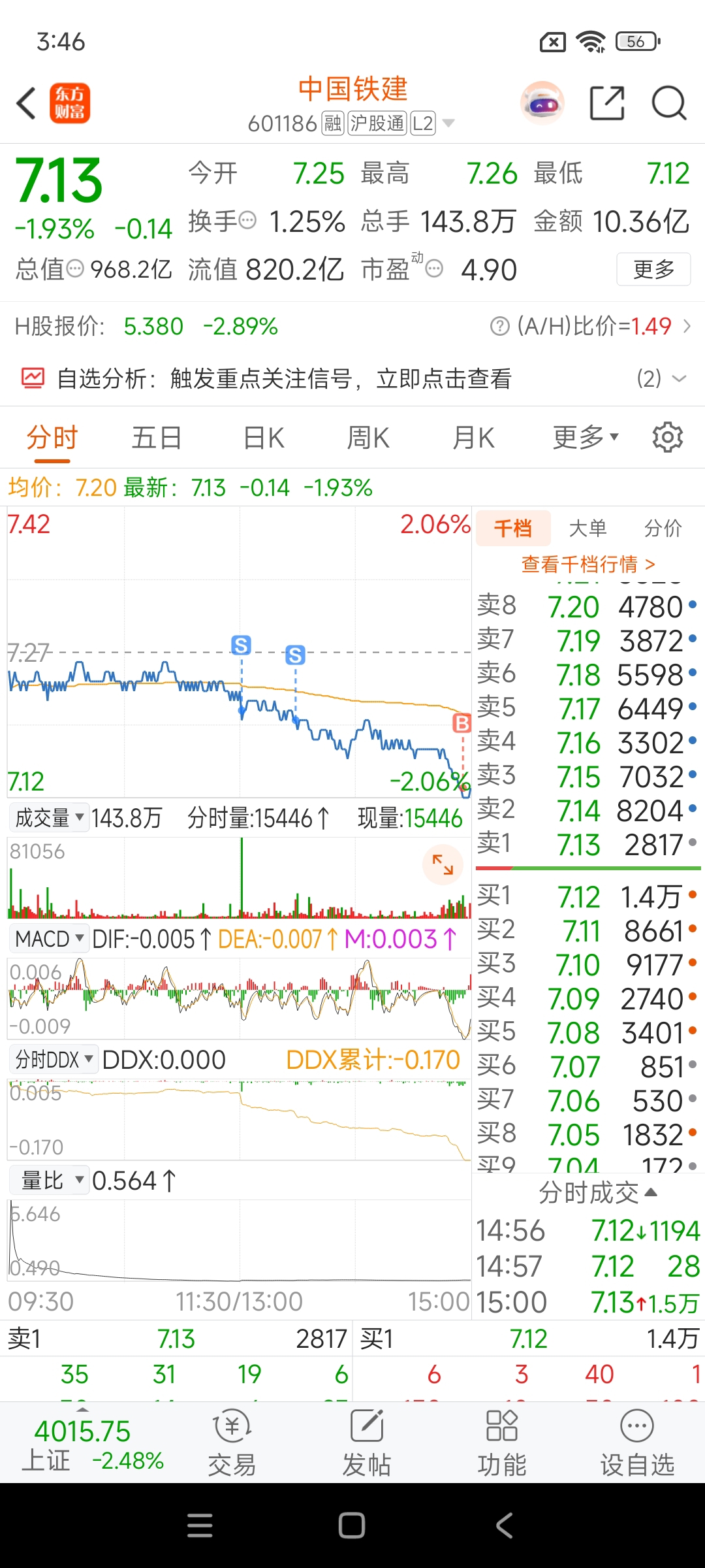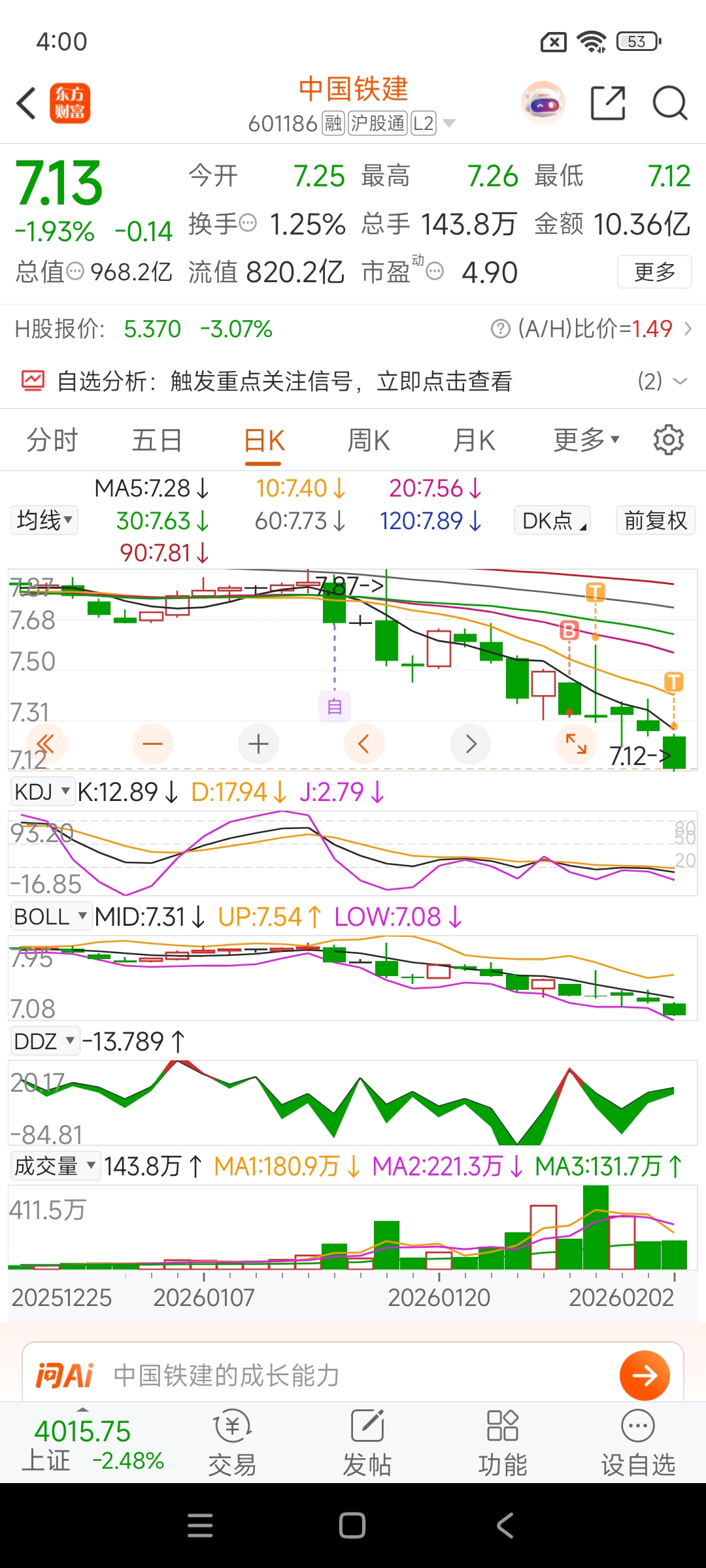 $中国铁建(SH601186)$ 中字央企,破净,5倍不到的PE,十年大底,黄金坑,2~3月的主线,大盘4000点,你在多少点?好不容易发现的你,不赚一大笔怎么可能走!做T是真的香。